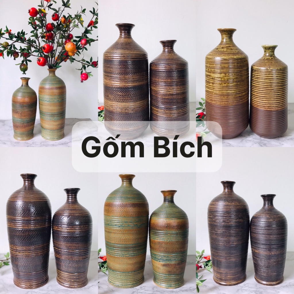 Nhà cửa & Đời sống > Trang trí nhà cửa > Bình trang trí || Bình Hoa Dáng Chai To Cổ Nhỏ Men Mộc Cắm Đào Lựu Tuyết Mai Đẹp Gốm Sứ Bát Tràng - Gốm BíchCòn hàng