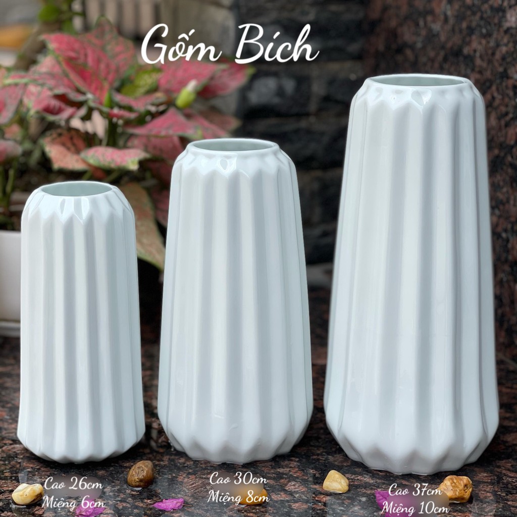 - Lọ hoa Sứ Dáng Ống Kẻ Men Trắng Khử đẹp - Hàng loại 1