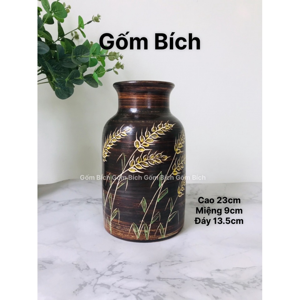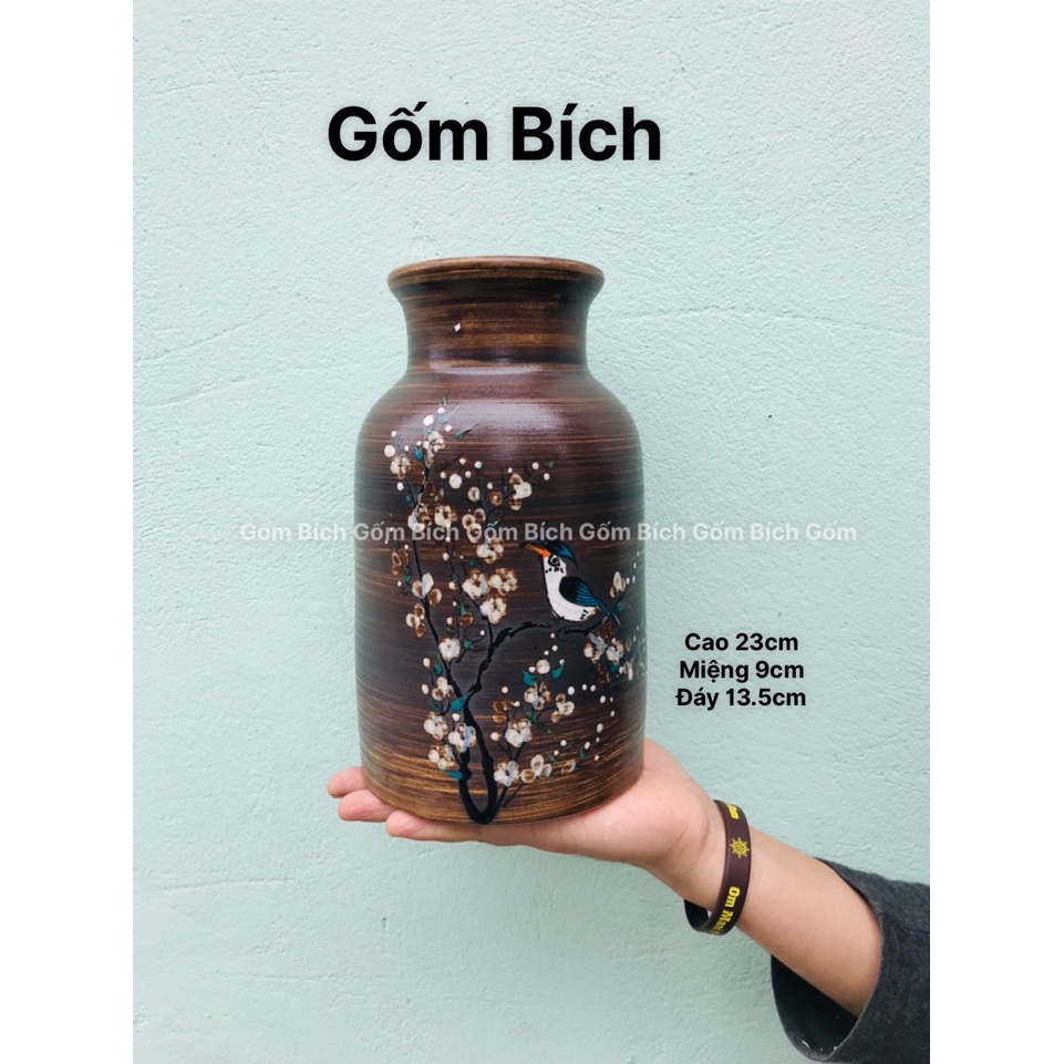 - Kích thước: cao 23cm, miệng 9cm, đáy 13.5cm