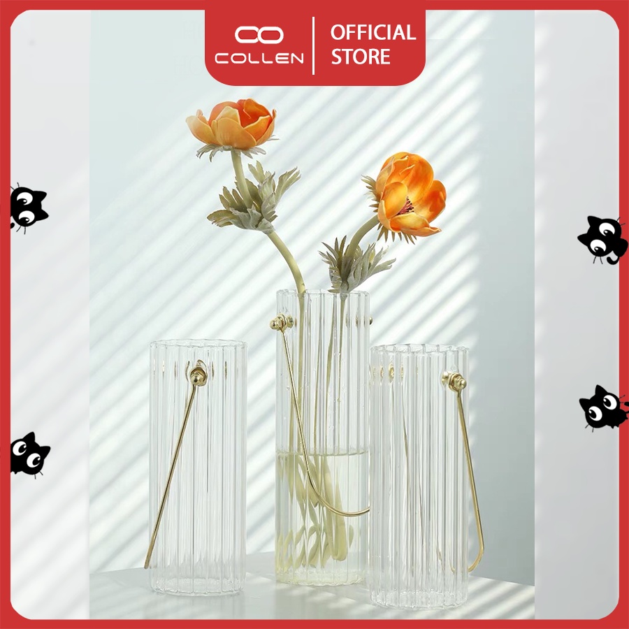 Bình hoa decor thủy tinh , lọ hoa có tay cầm trang trí nhà cửa bình hoa trang trí Hàn Quốc Collen Life