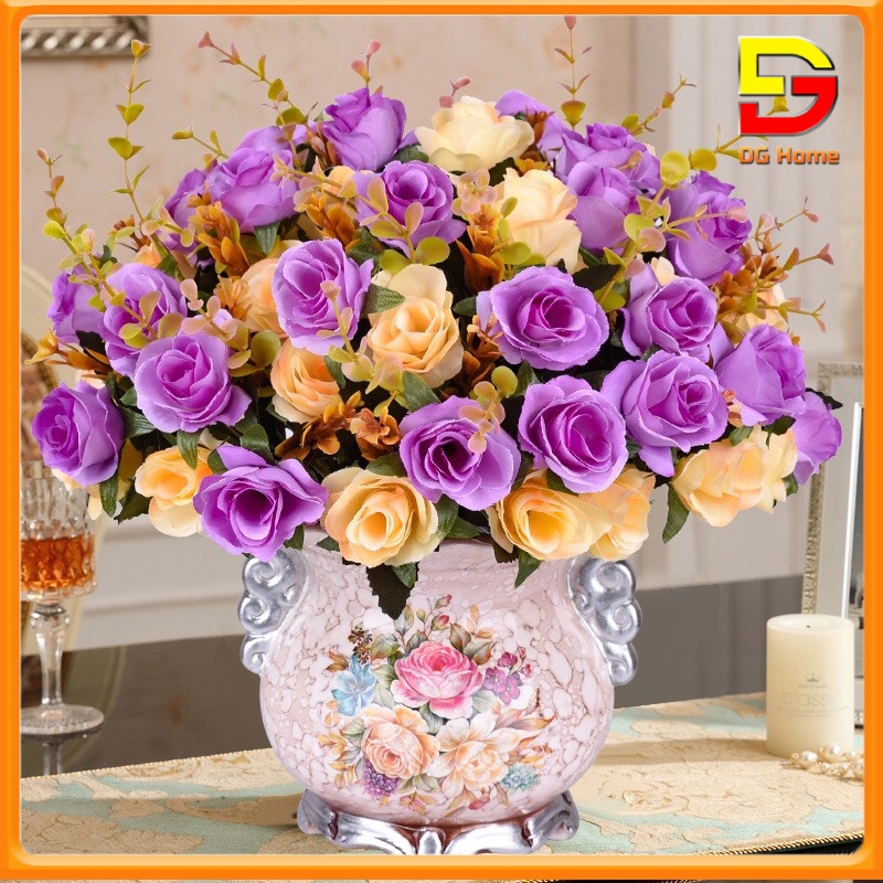 - Bình hoa đã cắm sẵn các mẫu hoa đẹp như hoa hồng pháp, hoa hồng trà...