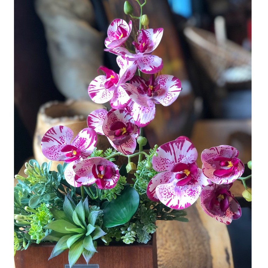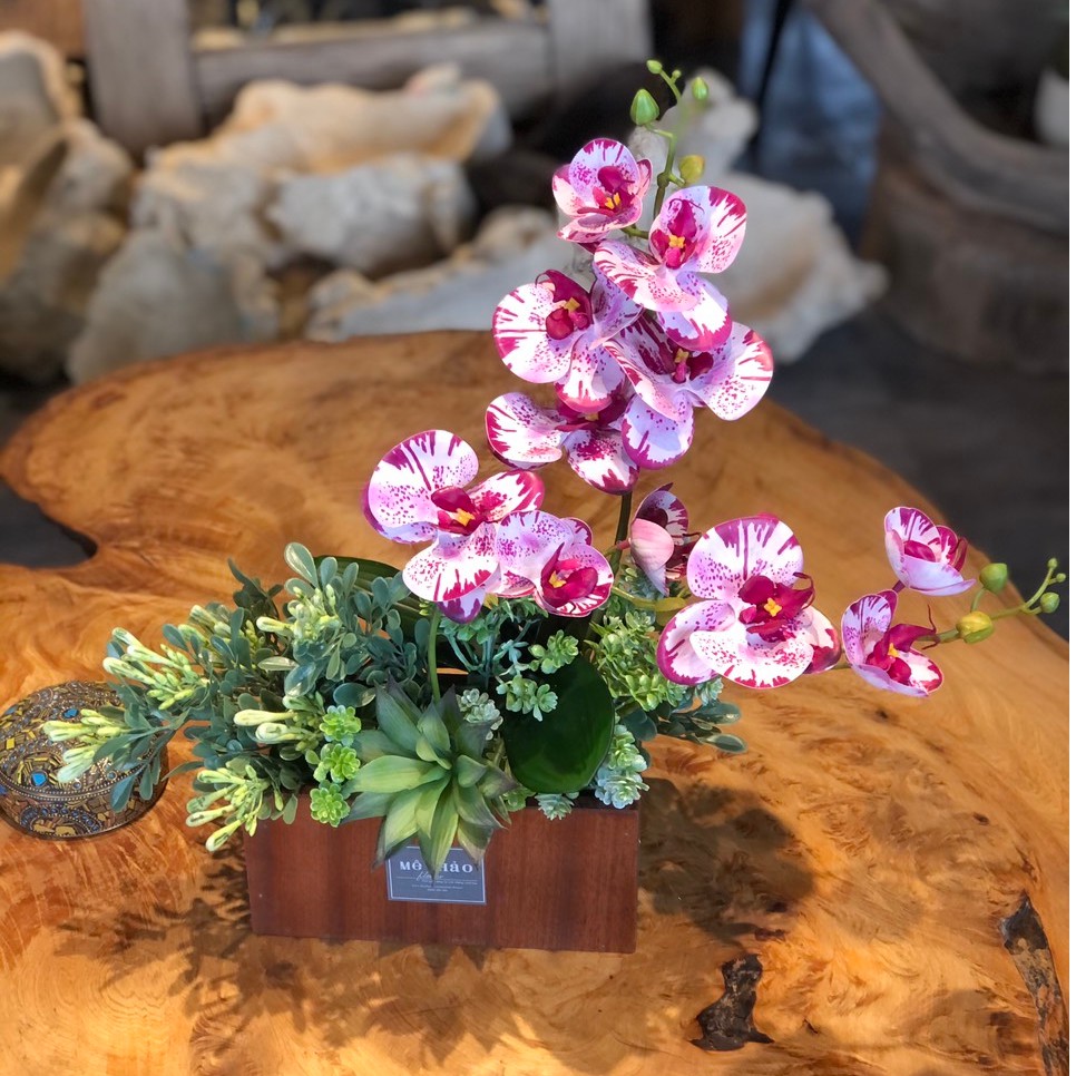 Bình Hoa Giả Cao Cấp Mix Lan Hồ Điệp Và Sen Đá Dùng Làm Quà Tặng, Trang Trí Nội Thất, Decor Shop, Quán Cafe