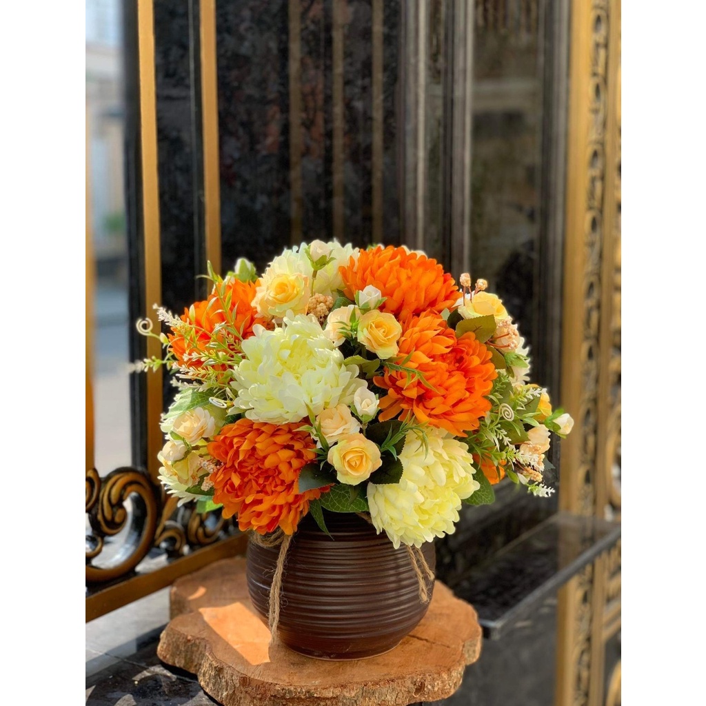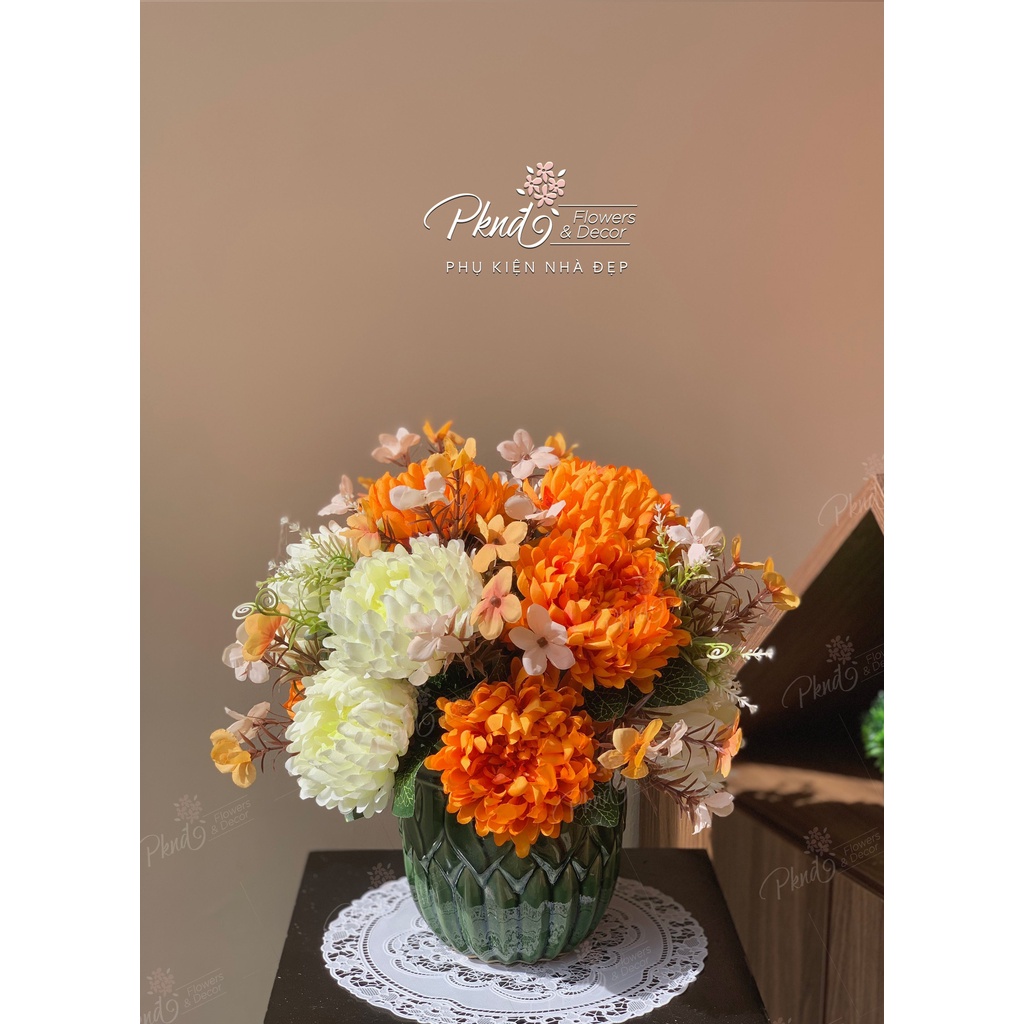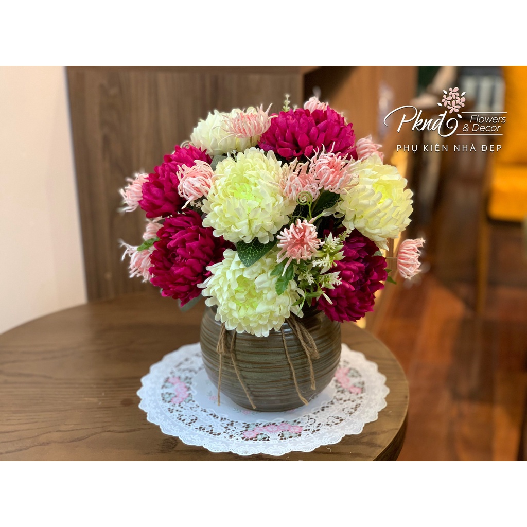 Nhà cửa & Đời sống > Trang trí nhà cửa > Hoa trang trí || Bình hoa giả cúc mẫu đơn để bàn đẹp PKND FLOWERS & DECORCòn hàng
