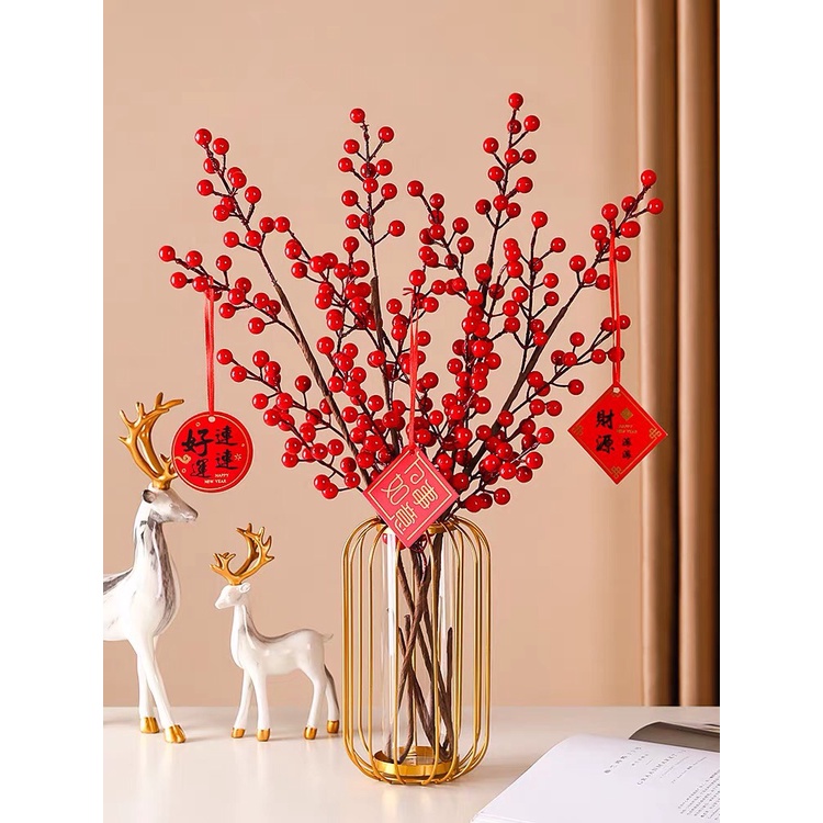 Set 2 gồm : 1 bình + 4 cành đào đông + cành lá ánh kim + Thiệp đỏ.