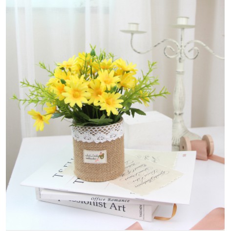 Tên bé: bộ đồ hoa giảVề chất liệu: túi vải bố chậu hoa, hoa vải lụa nhựa