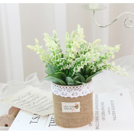 Tên : bộ hoa giảVề chất liệu: túi vải bố chậu hoa, hoa vải lụa nhựa