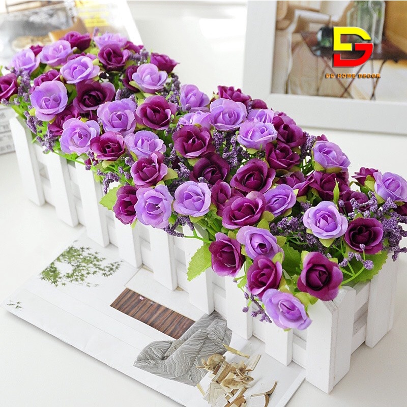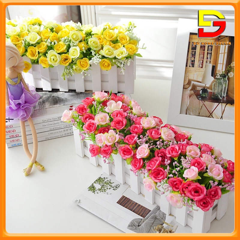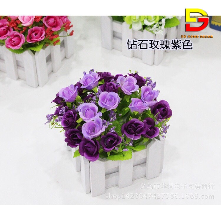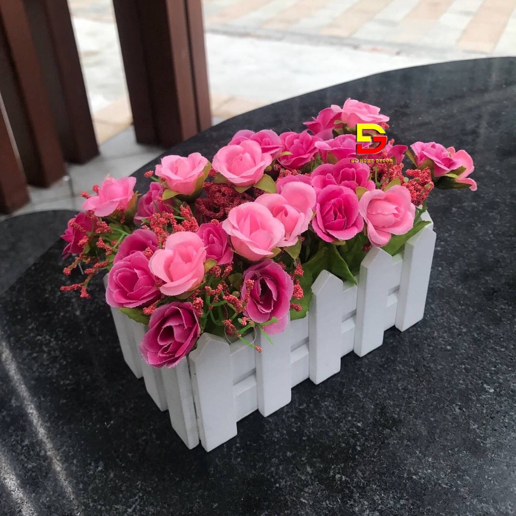 Hàng rào gỗ 10cm -20cm cắm sẵn hoa hồng nhí siêu đẹp để bàn trang trí