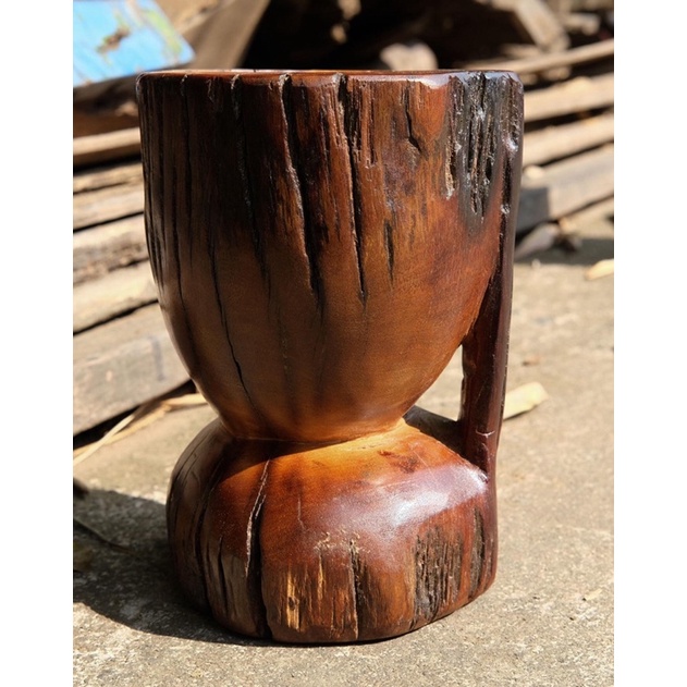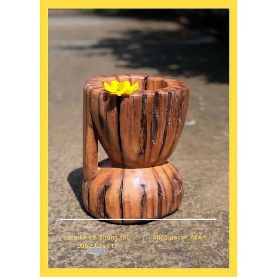 Bình hoa gỗ nguyên khối decor trang trí nhà cửa quán cafe phong cách bắc âu kích thước 20x30cm
