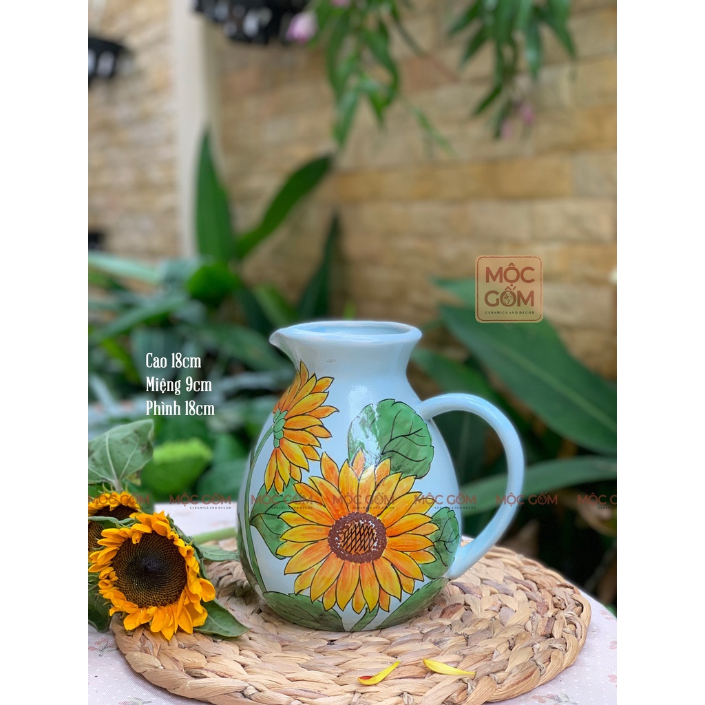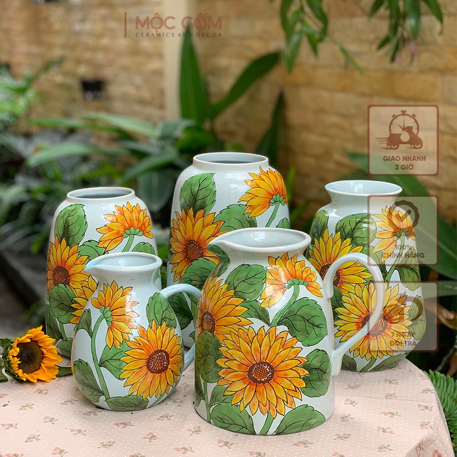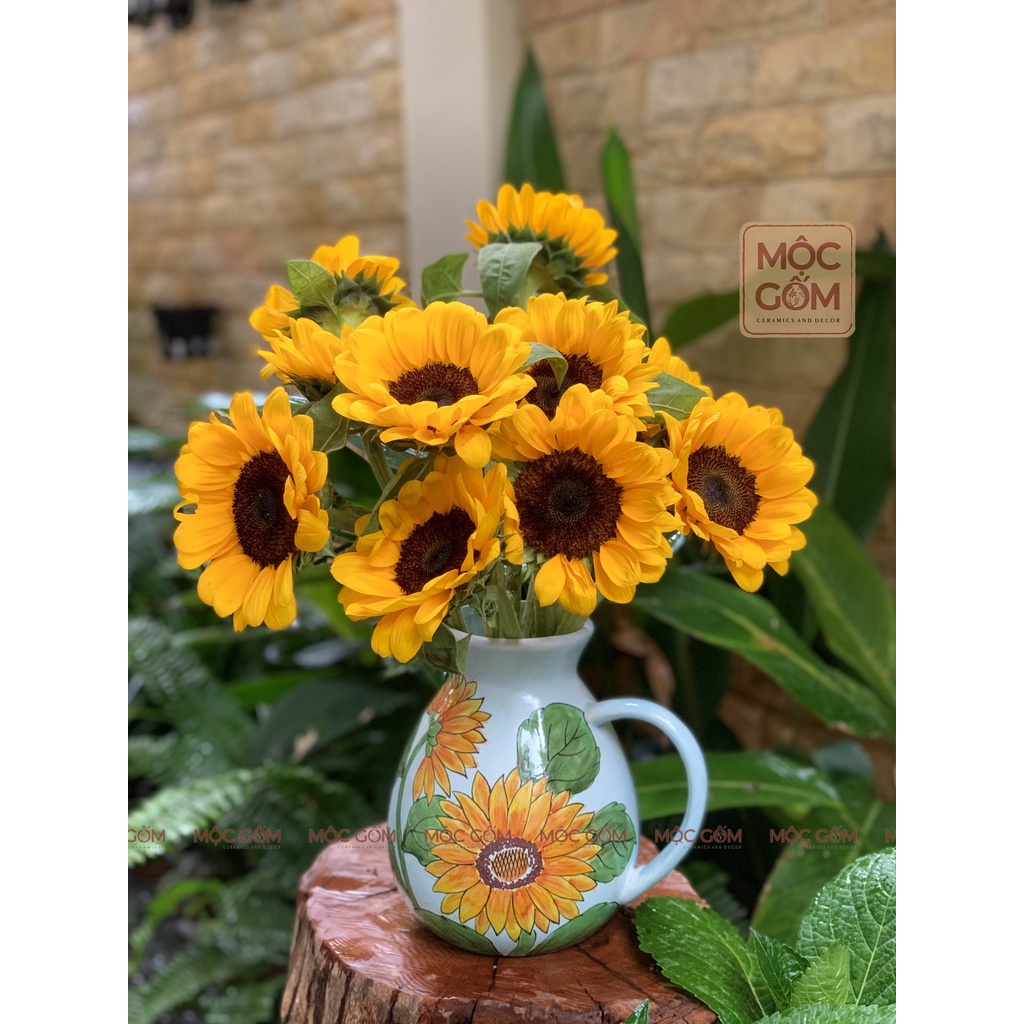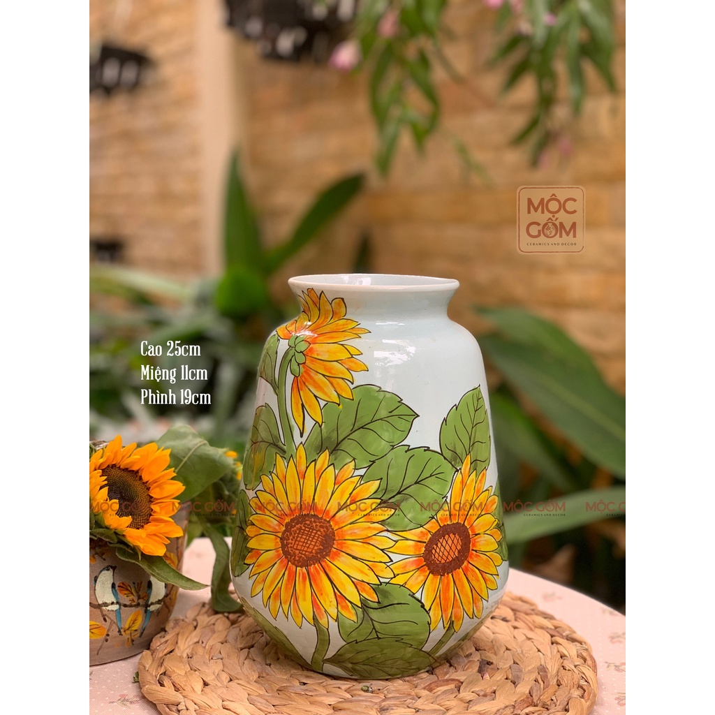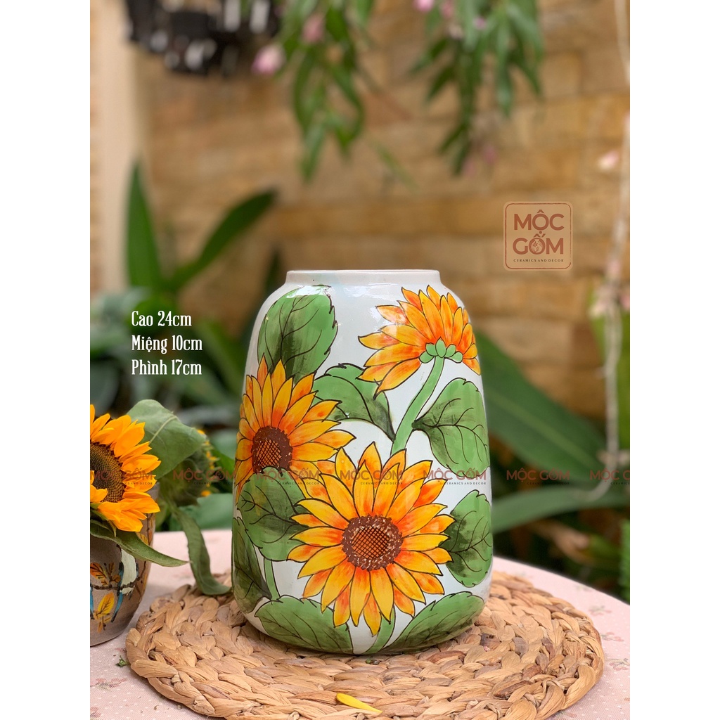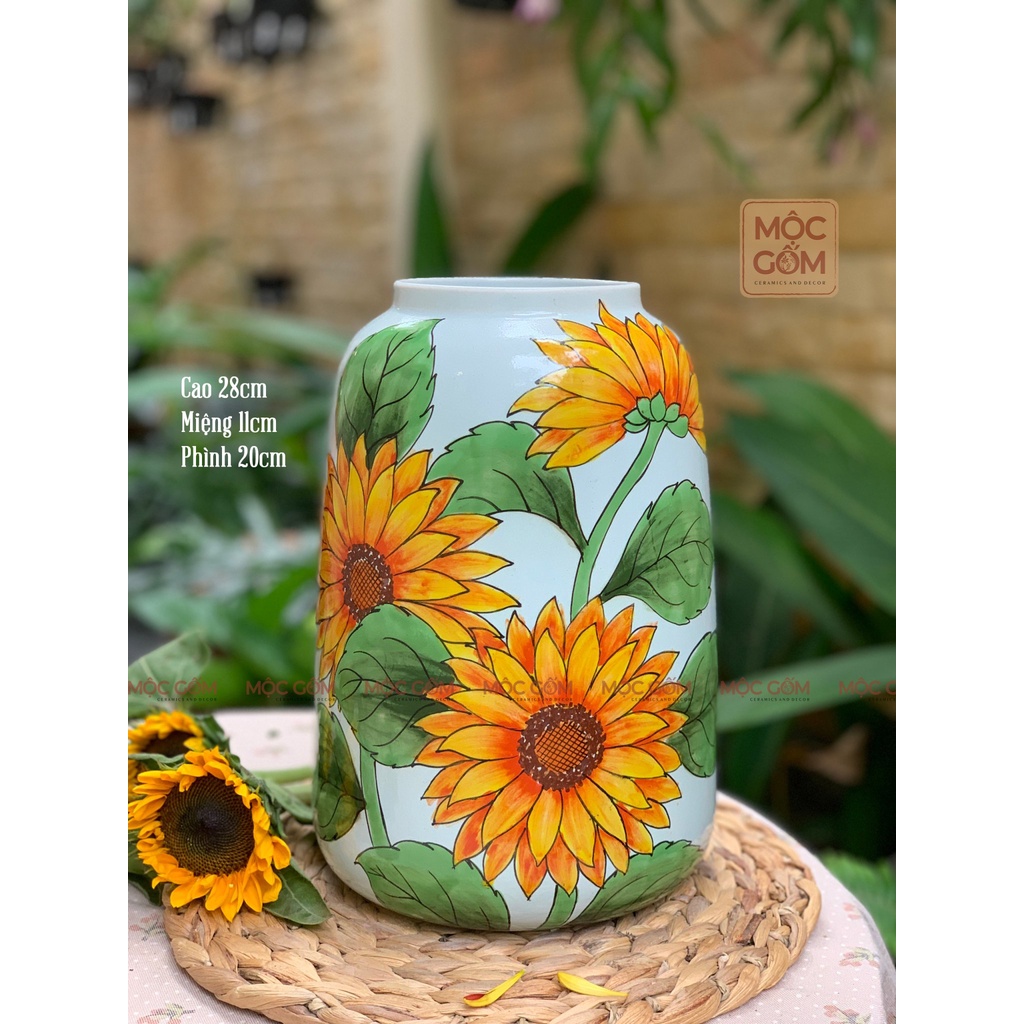 Bình hoa gốm Bát Tràng vẽ tay họa tiết hoa hướng dương - Bình cắm hoa hướng dương | Mộc Gốm MG96