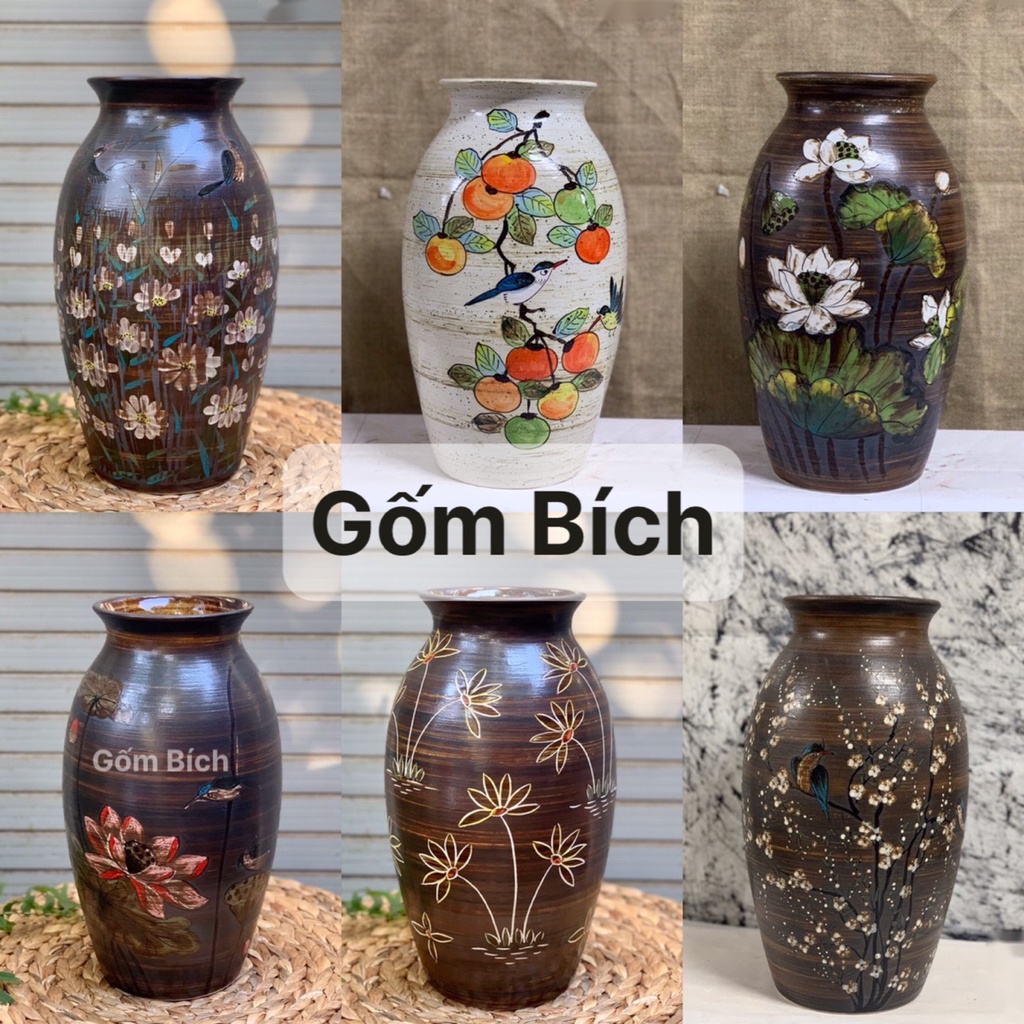 Nhà cửa & Đời sống > Trang trí nhà cửa > Bình trang trí || Bình Hoa Gốm Dáng Đu Đủ To Vẽ Hoa Thủ Công Lọ Hoa Đẹp Gốm Sứ Bát Tràng - Gốm BíchCòn hàng