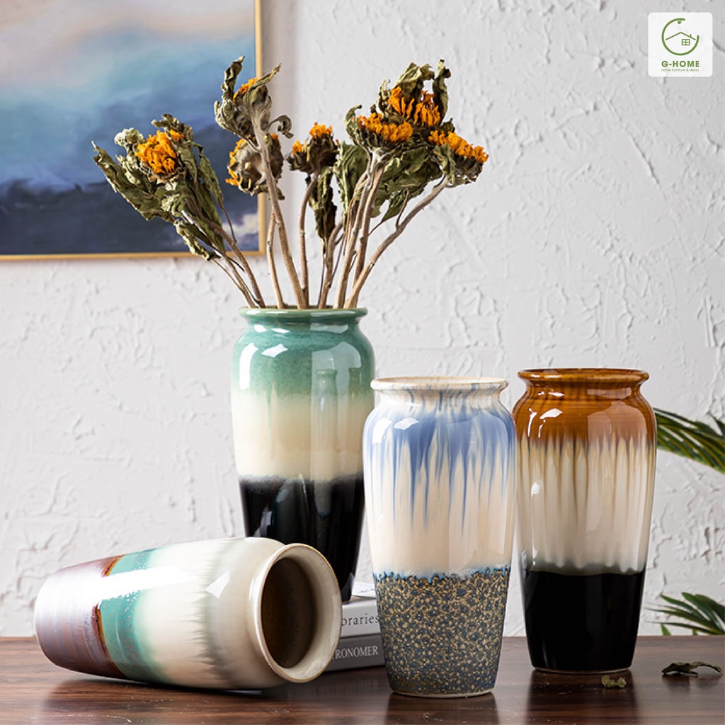 Bình hoa gốm men chảy trang trí nhà cửa, chất liệu gốm cao cấp, phối màu sắc trang nhã cắm hoa siêu xinh, BH21 MENCHAY