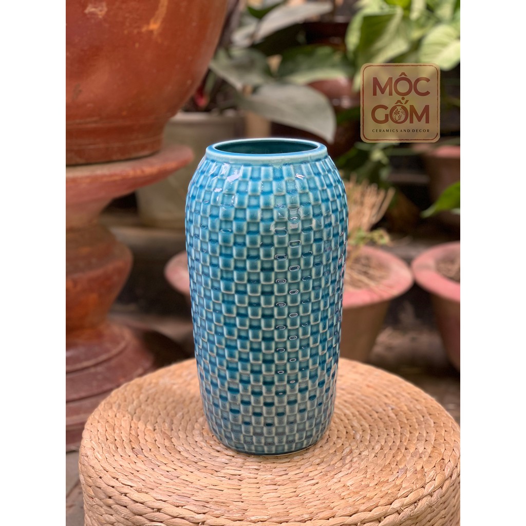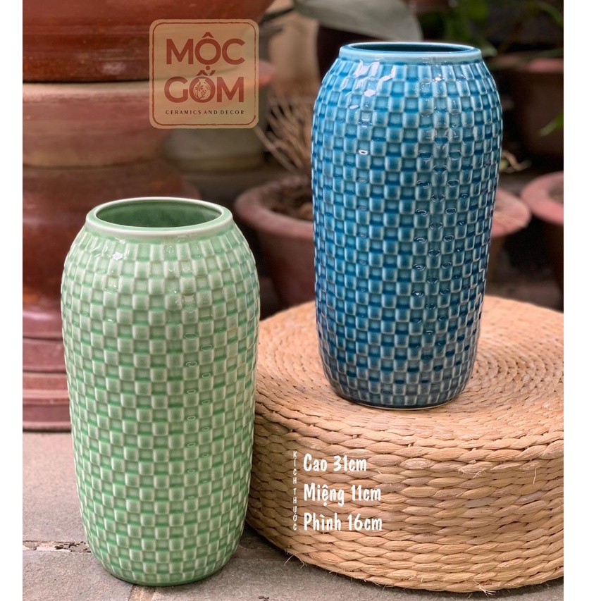 Bình hoa gốm men lam ngọc Bát Tràng trang trí phòng khách đẹp - Mộc Gốm MG44
