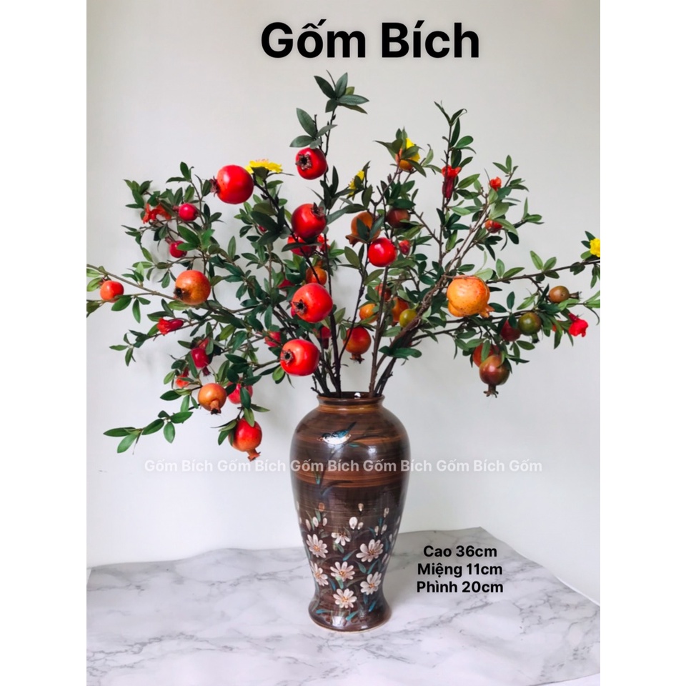 Bình Hoa Gốm Men Mộc Dáng Cao Chân Loe Lọ Hoa Cắm Đào Lựu Tuyết Mai Đẹp Gốm Sứ Bát Tràng - Gốm Bích