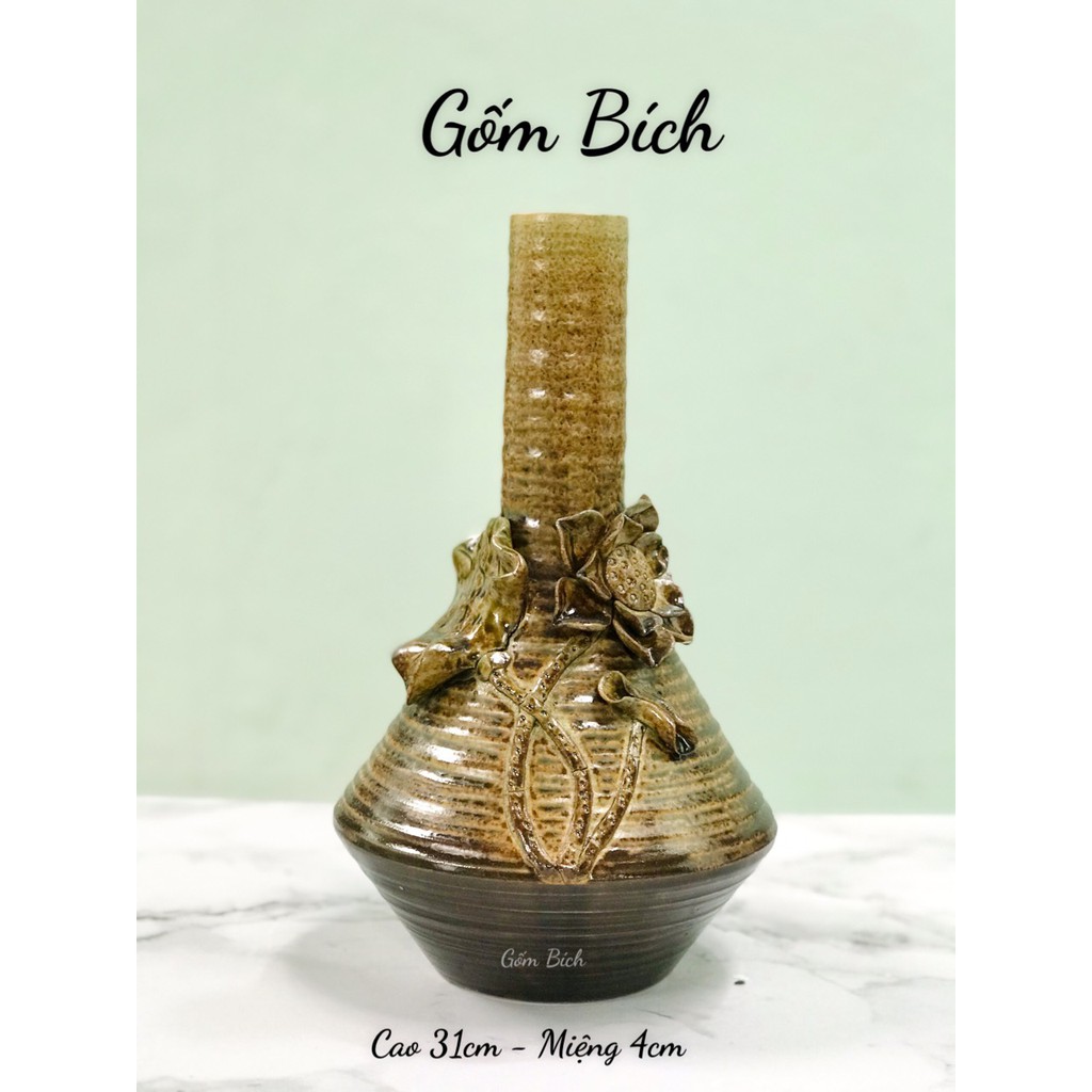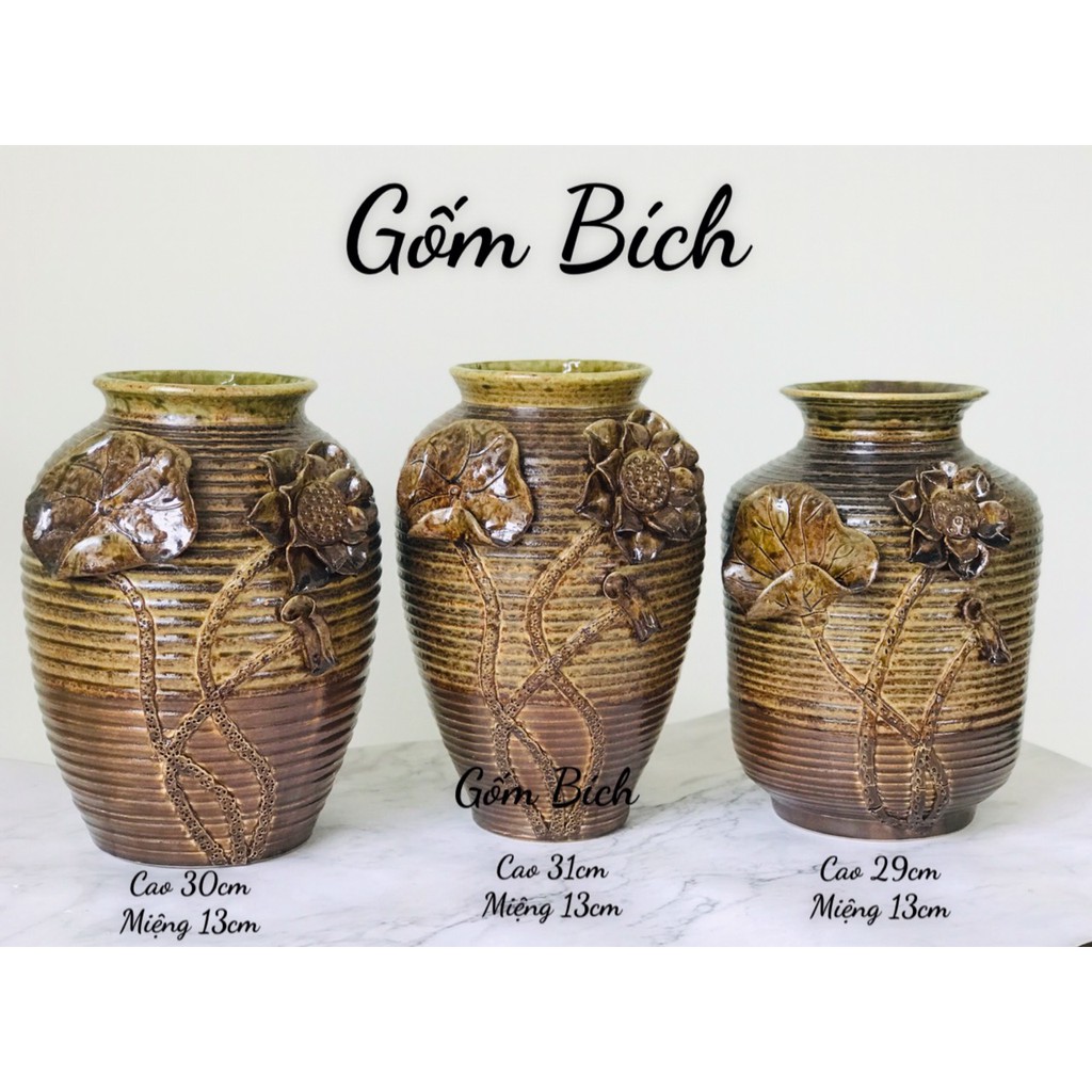 Nhà cửa & Đời sống > Trang trí nhà cửa > Bình trang trí || Bình Hoa Gốm Men Mộc Đắp Hoa Sen - Gốm Sứ Bát TràngCòn hàng