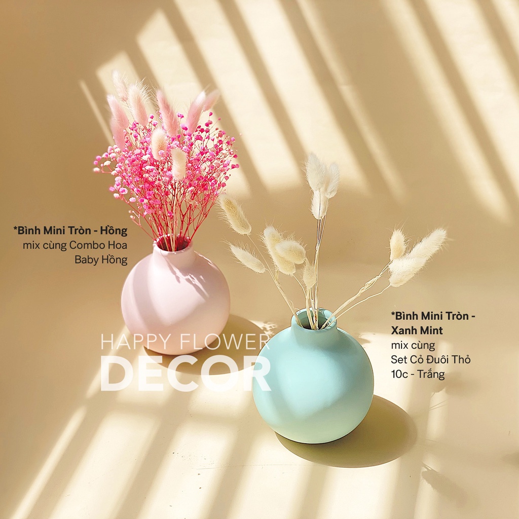 Bình hoa gốm mini tròn bắc âu cao cấp Happy Flower, trang trí nhà cửa, phòng ngủ, BGMĐẶC TÍNH SẢN PHẨM: