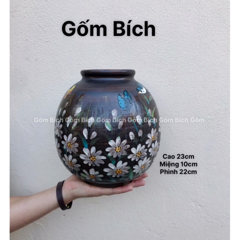 Bình Hoa Gốm Nhiều Mẫu Men Mộc Vẽ Cúc Họa Mi Gốm Sứ Bát Tràng - Gốm Bích