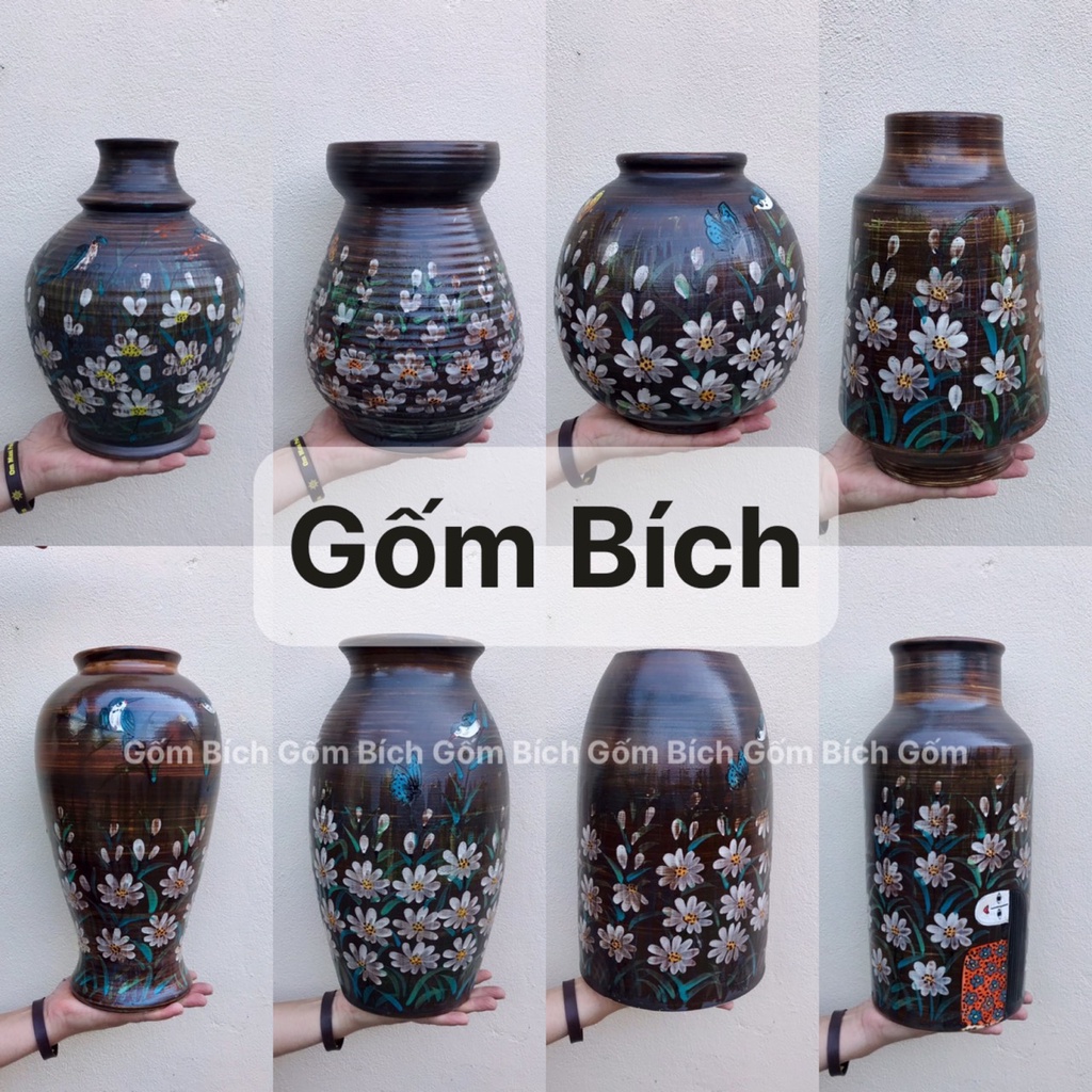 Nhà cửa & Đời sống > Trang trí nhà cửa > Bình trang trí || Bình Hoa Gốm Nhiều Mẫu Men Mộc Vẽ Cúc Họa Mi Gốm Sứ Bát Tràng - Gốm BíchCòn hàng
