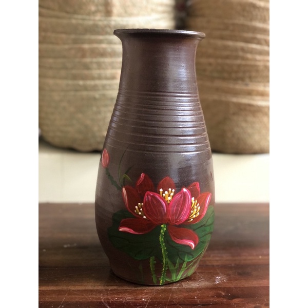 Giới thiệu Bình hoa gốm sành vuốt tay thủ công vẽ tay hoa sen cao 30cm