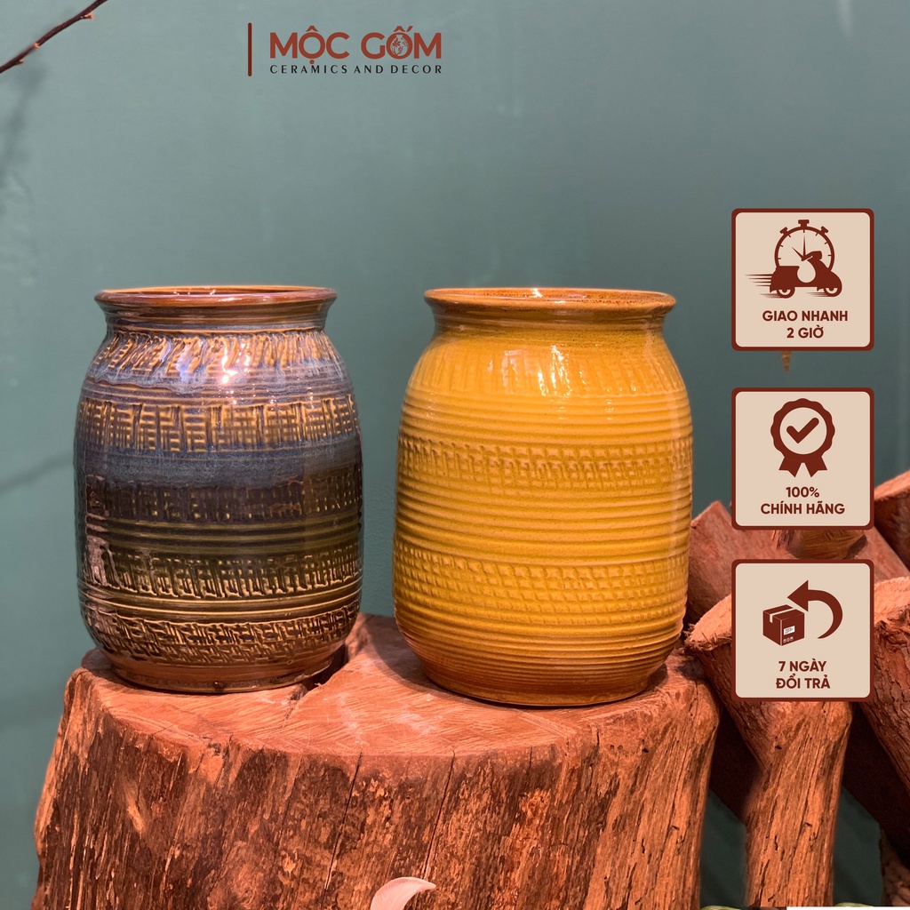 Bình hoa gốm sứ Bát Tràng men hỏa biến tone xanh chuyển màu vintage trang trí nội thất đẹp Mộc Gốm MG27