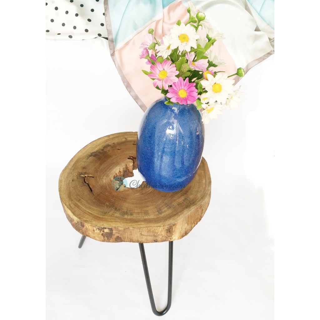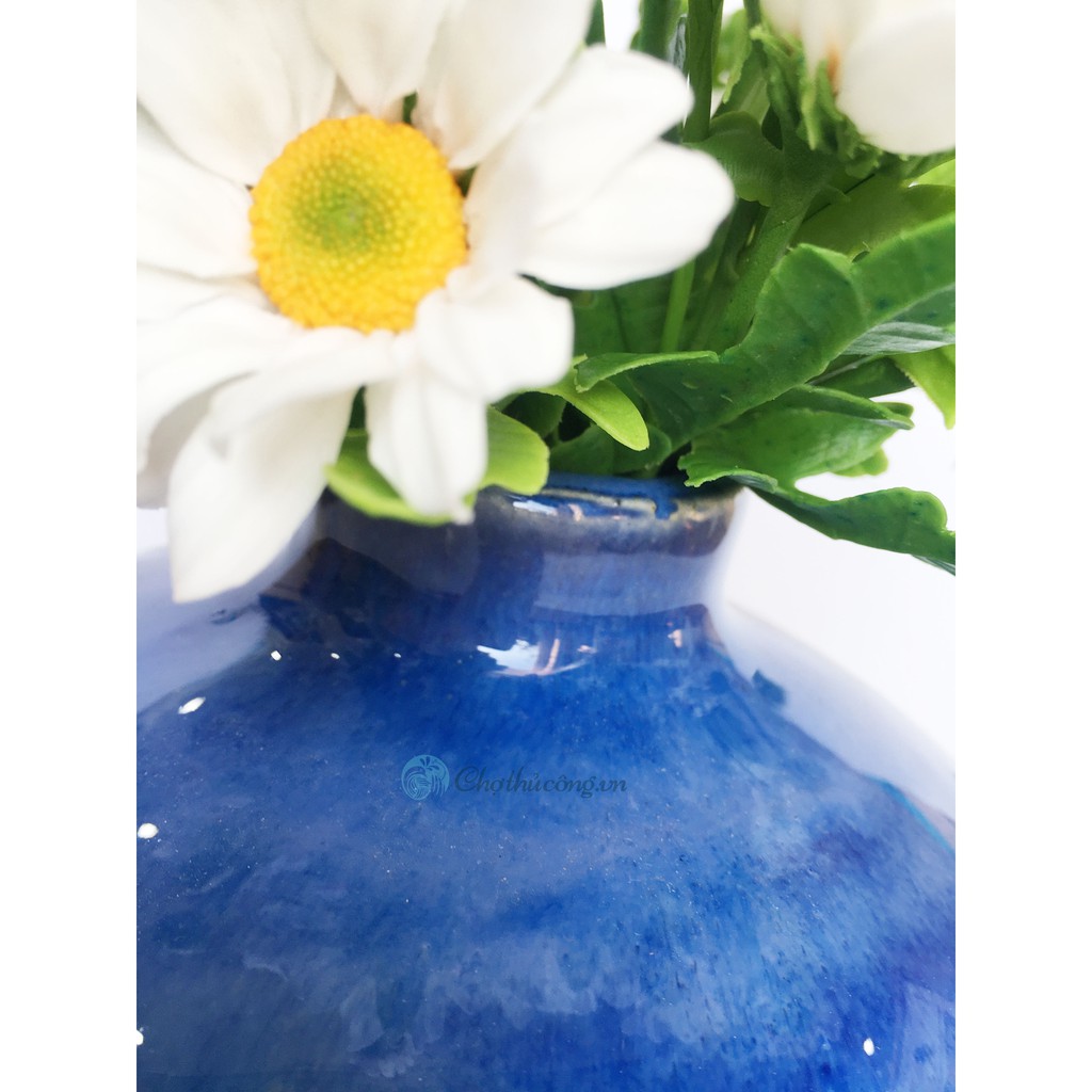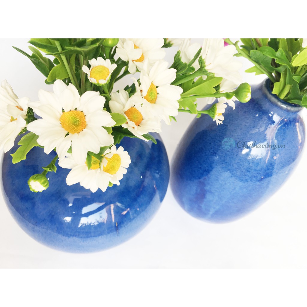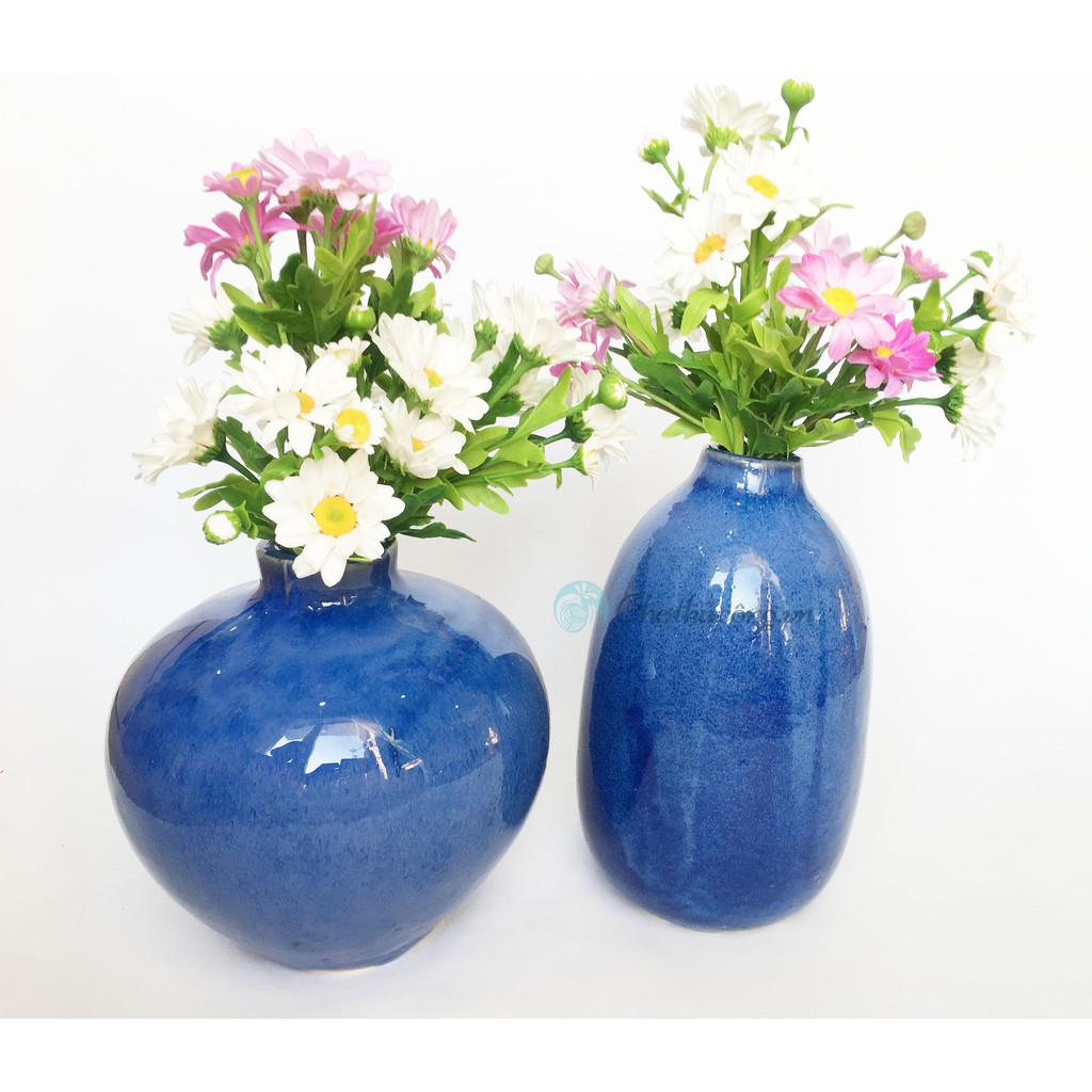 Bình hoa gốm sứ trang trí tròn cổ lọ men sứ cao cấp cắm Hoa để bàn, trang trí màu Xanh dươngPhù hợp cắm hoa tươi, hoa giả, hoa khô hay trang trí / decor, ...