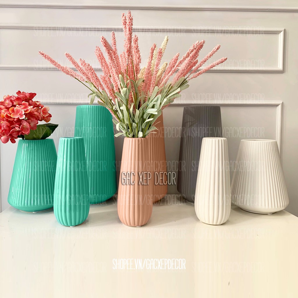 * Công dụng: cắm hoa tươi, hoa giả, hoa khô; bày trang trí nhà cửa; bày kệ ti vi, tủ kính, giá học tập, phòng khách, nhà bếp; làm quà biếu, quà tặng;...