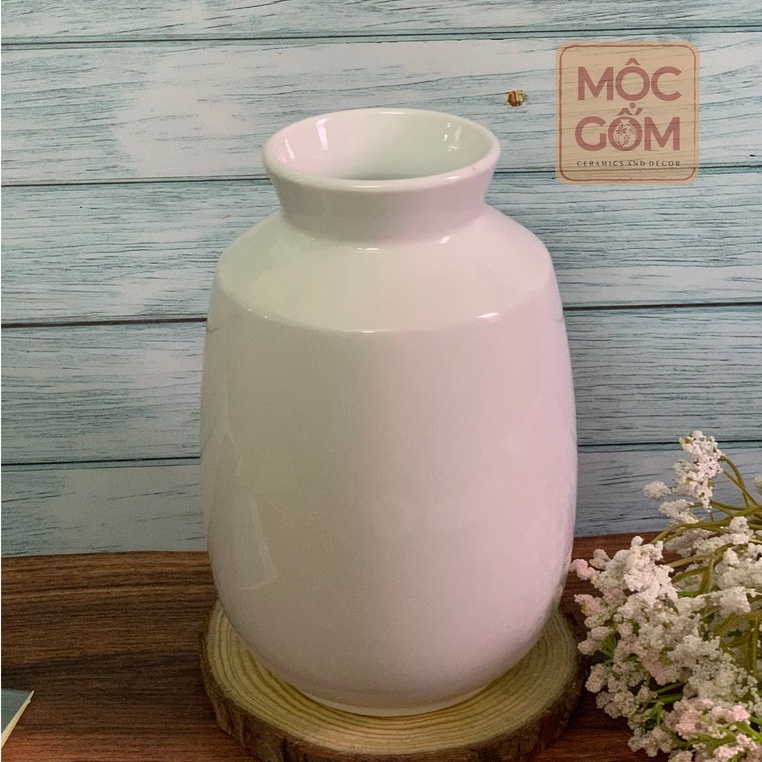 Nhà cửa & Đời sống > Trang trí nhà cửa > Bình trang trí || Bình hoa gốm sứ men trắng khử cao cấp Bát Tràng cắm hoa đẹp trang trí phòng khách - Mộc Gốm MG38Còn hàng