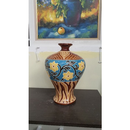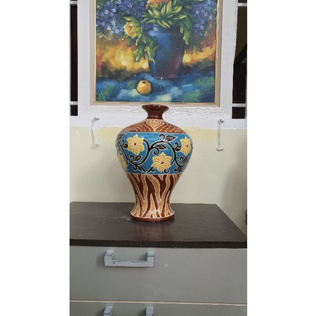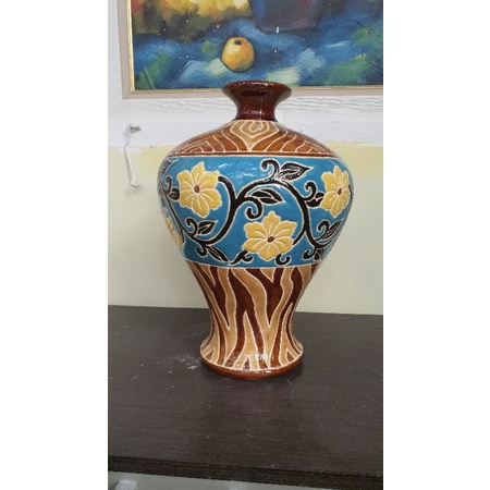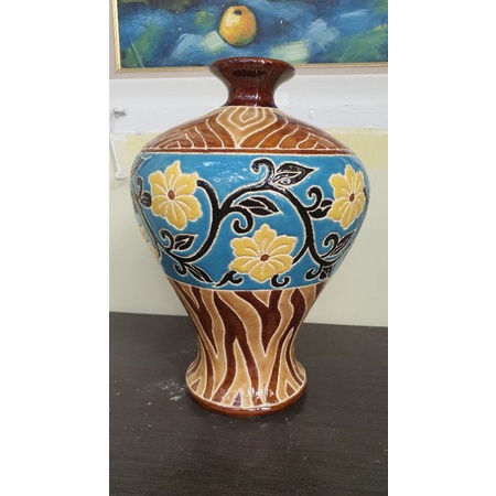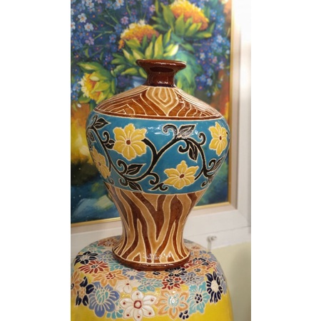 Bình hoa gốm sứ Nam Bộ dạng tỏi cao 35cm vòng bụng bình 79cm miệng bình 7cm.Hàng thủ công.