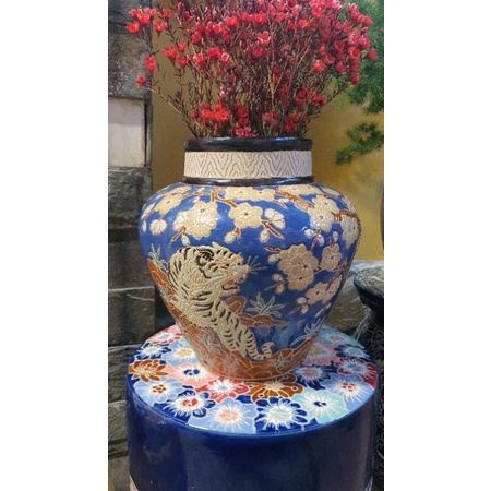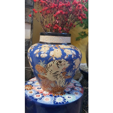 Bình hoa gốm sứ Nam Bộ cao 32cm miệng rộng 18cm.Hoa văn hoa mai và hổ nhỏ