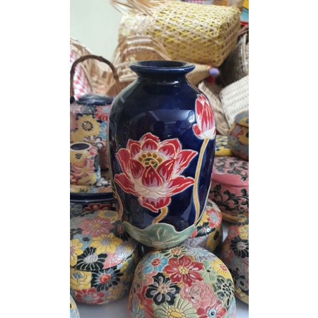 Bình hoa gốm sứ Nam Bộ xanh coban hoa sen.Sản phẩm làm tay thủ công.