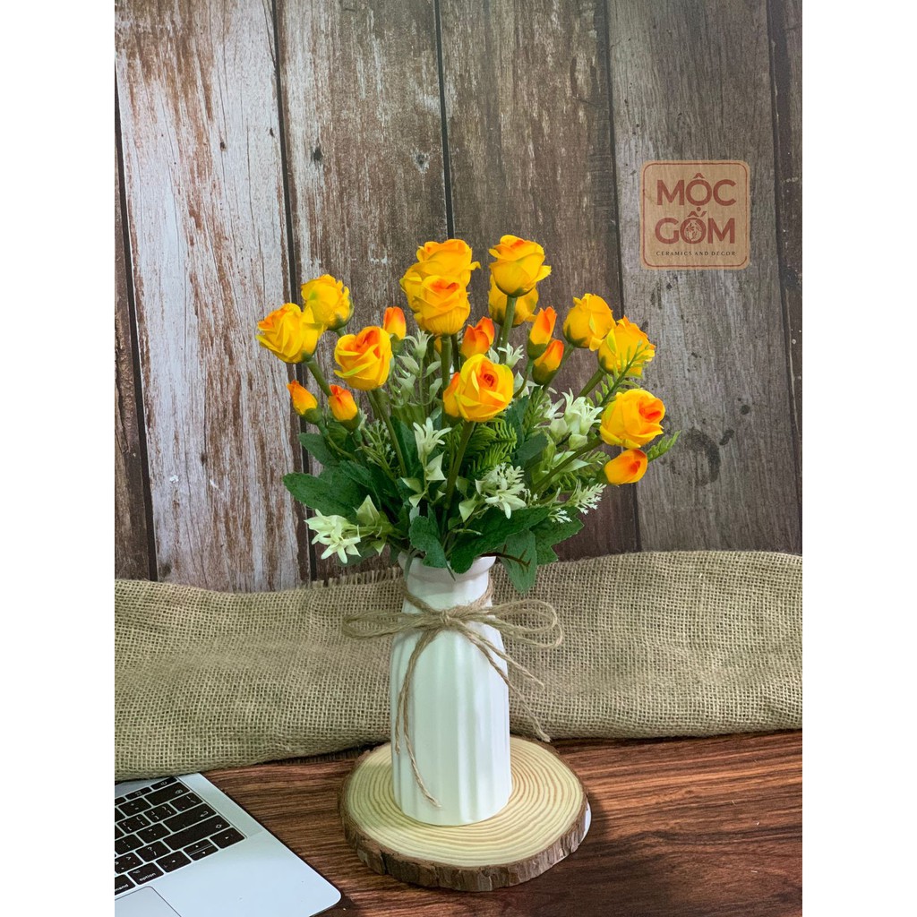 Bình hoa gốm sứ phủ men mát trang trí phòng khách Bát Tràng đẹp - Mộc Gốm MG52
