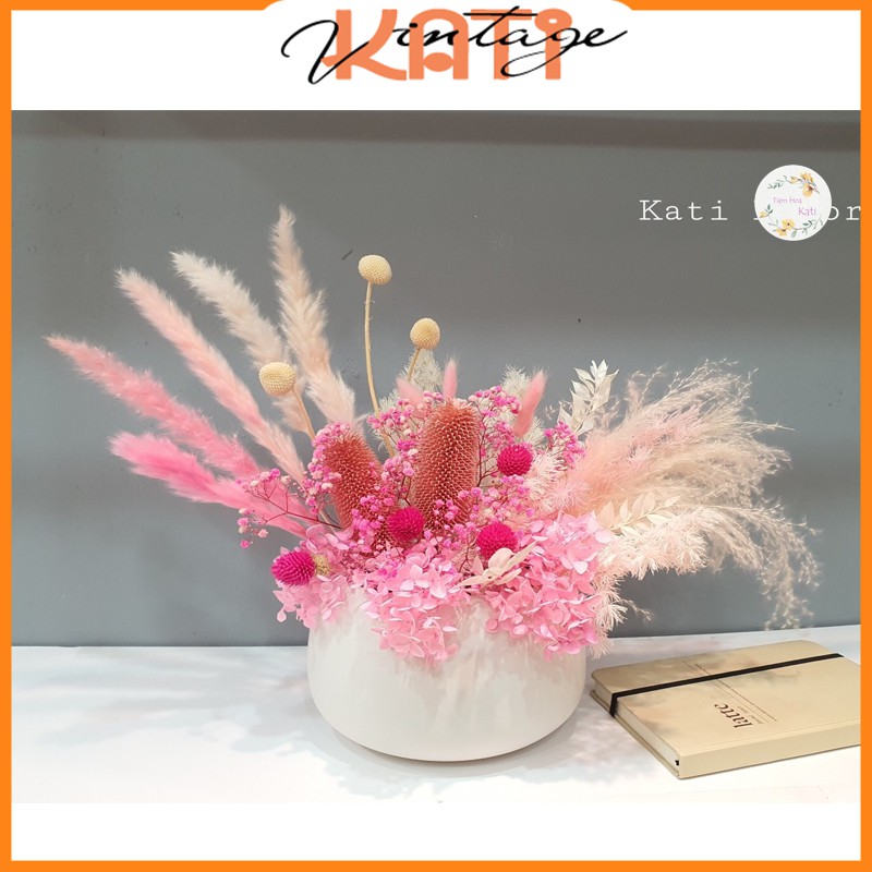 Bình hoa khô decor sang trọng cổ điển