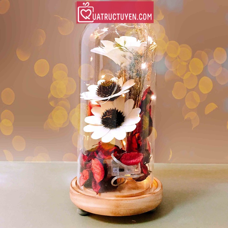 Bình hoa khô thủy tinh là sự sáng tạo độc đáo với việc kết hợp những bông hoa bằng gỗ và hoa khô đẹp đến mê mẩn được đựng trong 1 chiếc bình thủy tinh trong suốt sang trọng. Bình hoa khô thủy tinh hoa hướng dương này chắc chắn sẽ là món quà mới lạ đầy bất ngờ thú vị để bạn dành tặng người yêu hoặc bạn bè của mình.Thuộc tính