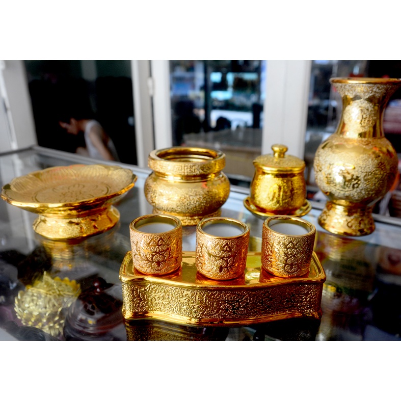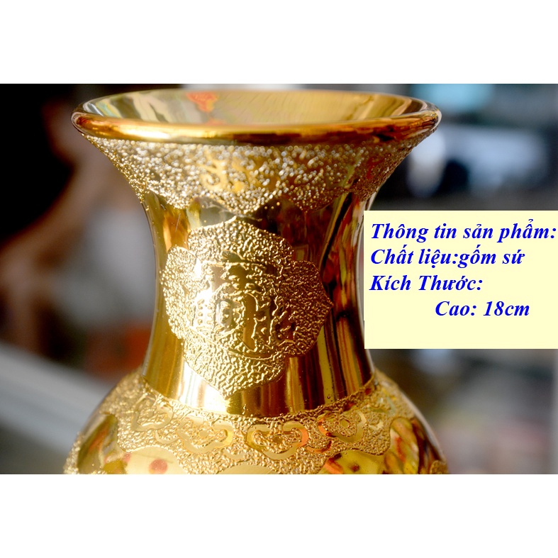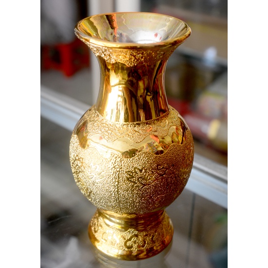 Bình hoa thờ cúng kim sa vàngKích thước:shop hiện có các cỡ cao 16cm --18cm --20cm --23cm--26cm
