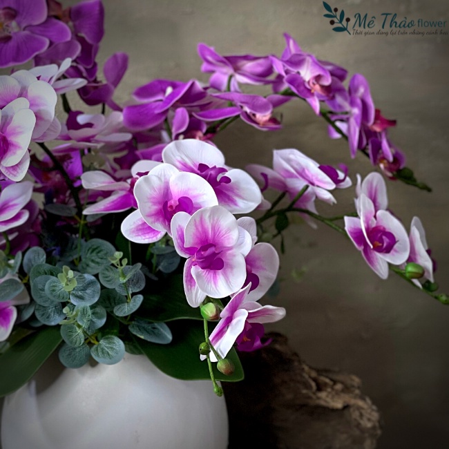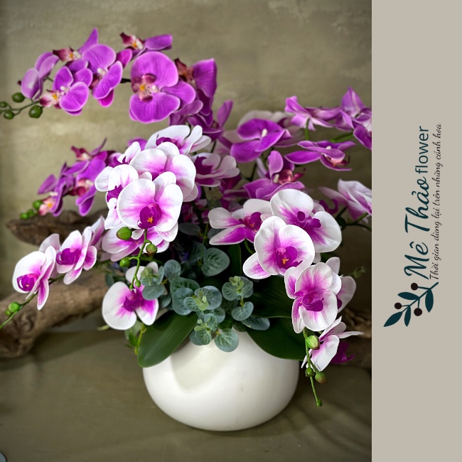 Bình Hoa Lan Giả- Lan Hồ Điệp Chất Liệu Cao Su- Bình Gốm Trang Trí Nội Thất,Decor Quán Cafe, Quà Tặng Tân Gia Của Mê ThảoMột bình hoa vừa đẹp vừa sang trọng, lại bền lâu và không tốn công sức chăm sóc. Chỉ mua một lần mà làm đẹp cho ngôi nhà của bạn suốt cả năm. Thật khó mà bỏ qua được hộp hoa mộc lan của Mê Thảo Flower.