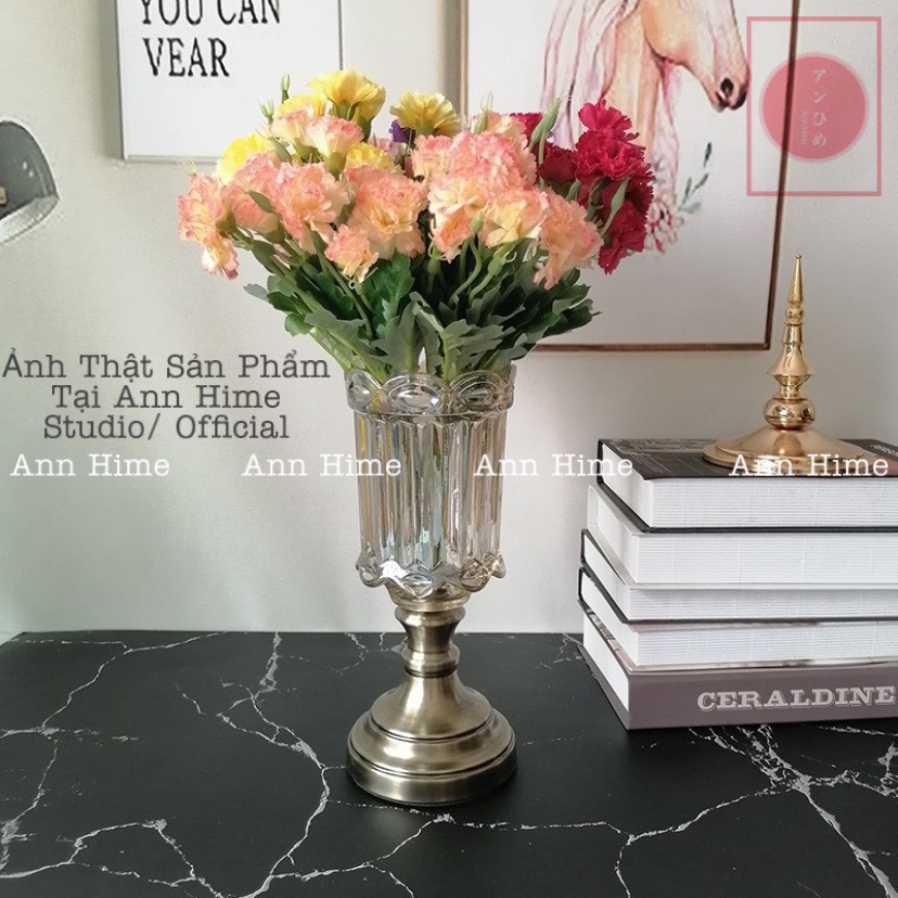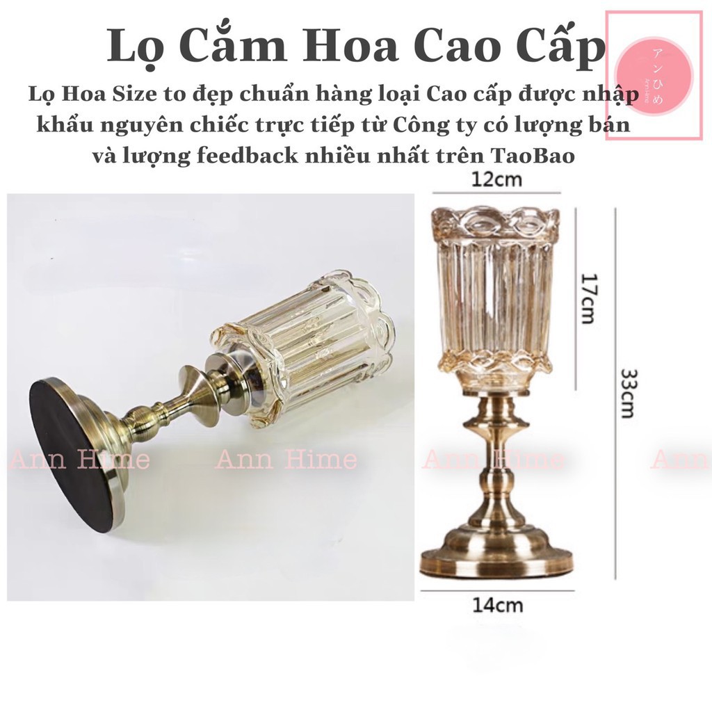 Bình Hoa Lọ Cắm Hoa Thủy Tinh Cao Cấp Đế Đồng Châu Âu