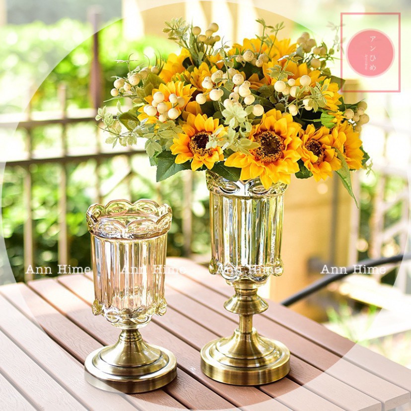 ✅Bình Hoa Lọ Cắm Hoa Thủy Tinh Cao Cấp Đế Đồng Châu Âu cỡ lớn