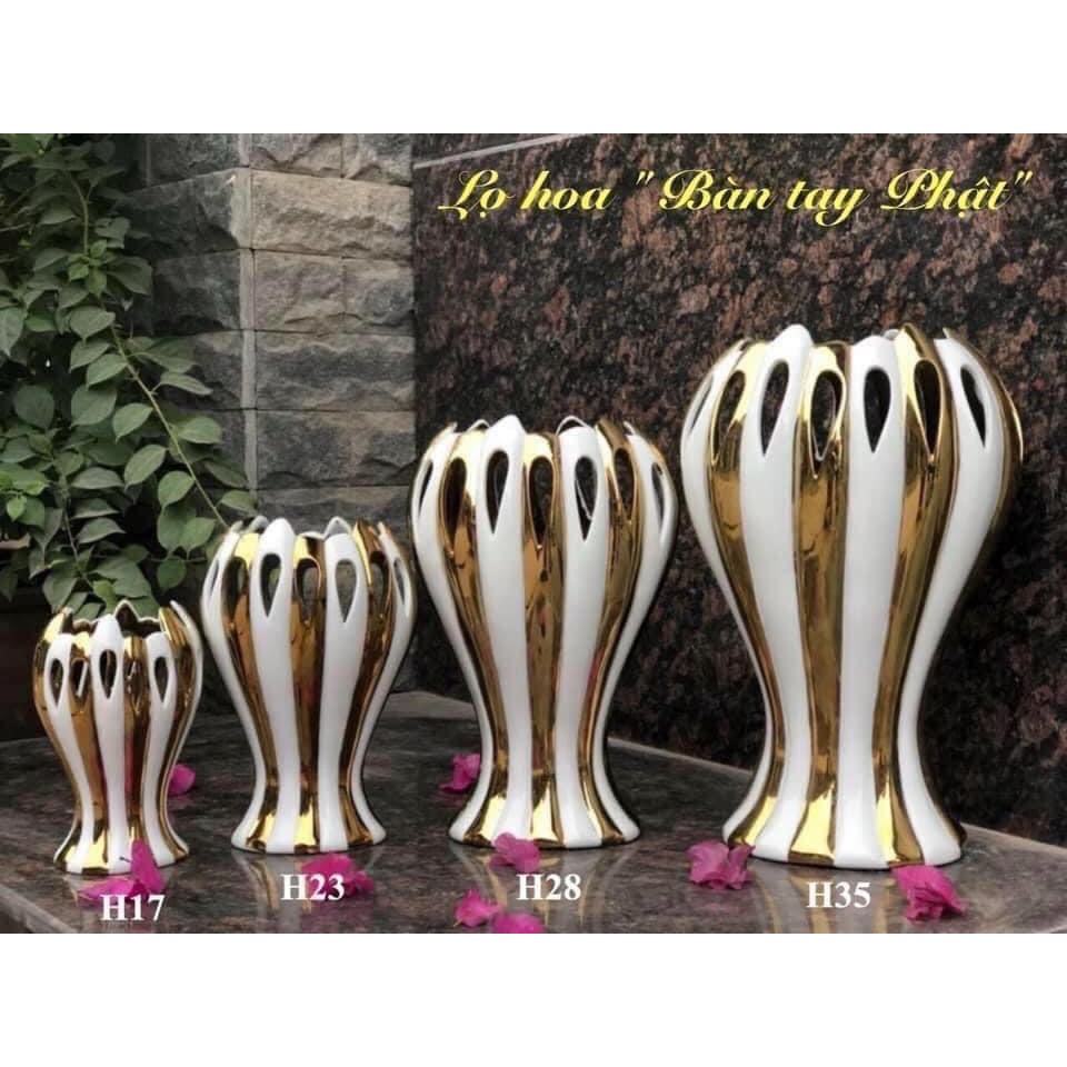 - Lọ hoa dáng bàn tay phật trắng vẽ vàng - Hàng loại 1