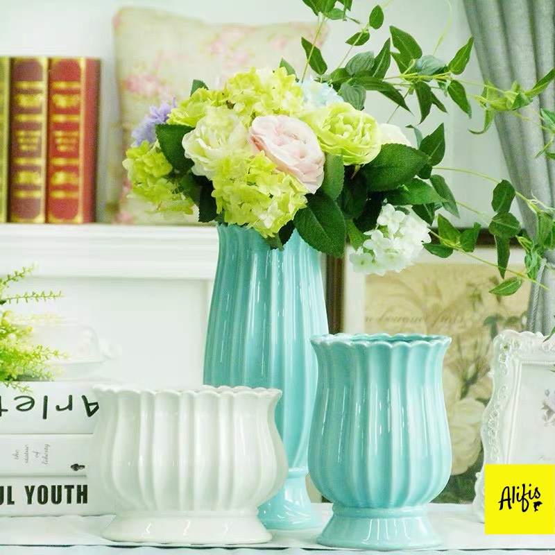 Bình hoa, lọ hoa bằng sứ dáng thon, miệng viền hoa hot trend 2022