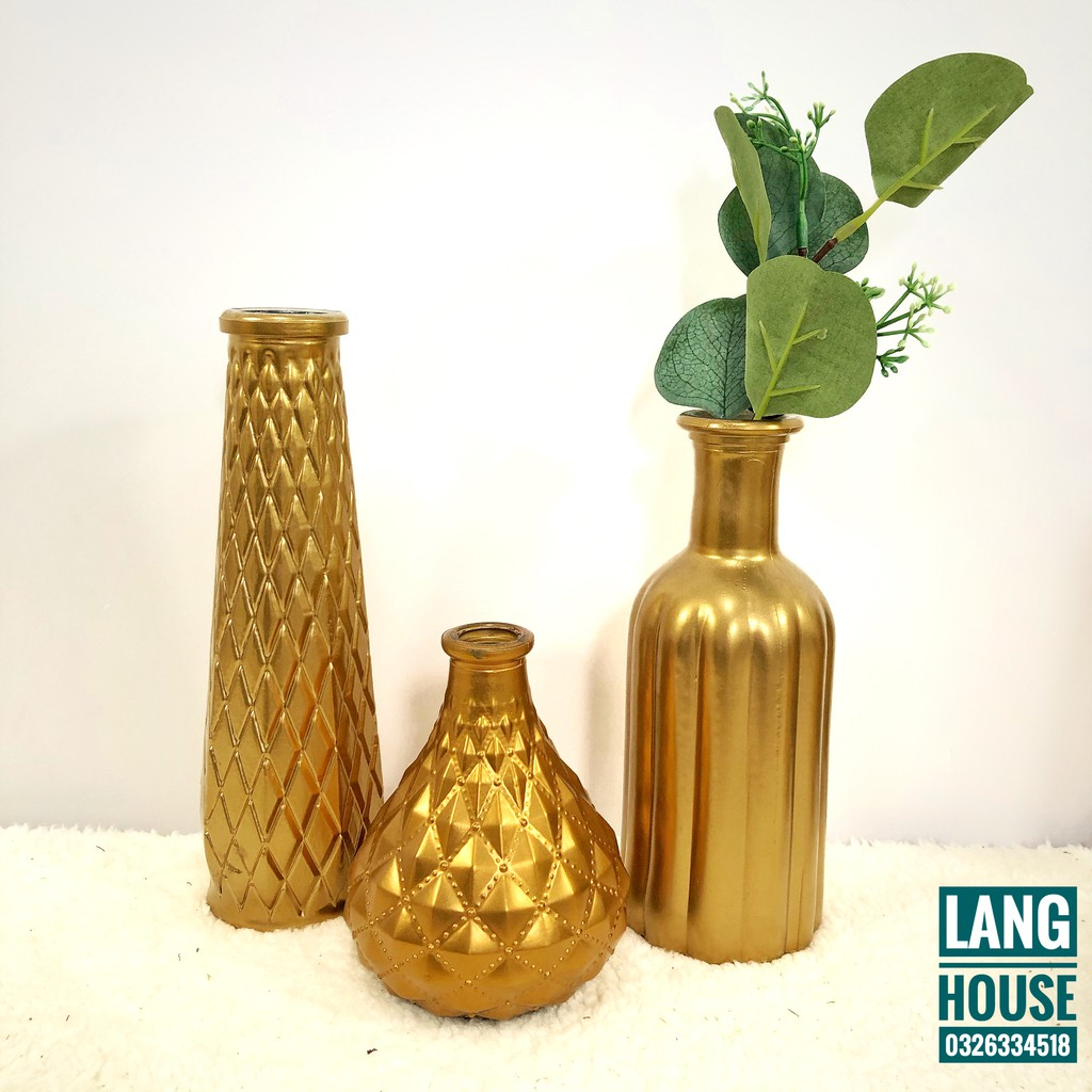 ✅ Lọ được làm bằng thuỷ tinh, bên ngoài phun nhũ vàng cẩn thận tỉ mỉ. Có 3 mẫu:
