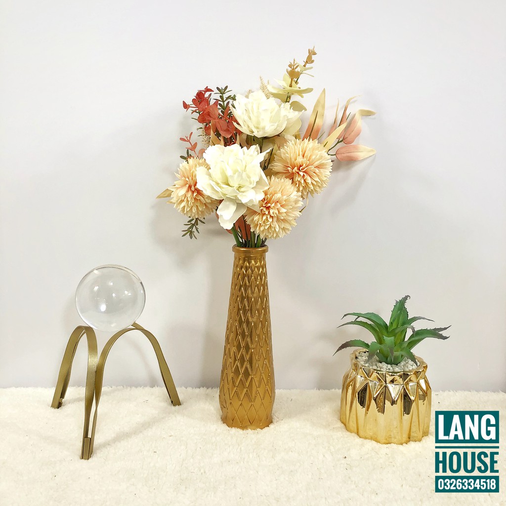 Nhà cửa & Đời sống > Trang trí nhà cửa > Bình trang trí || Bình Hoa (Lọ Hoa) - BÌNH HOA THUỶ TINH PHỦ NHŨ VÀNG SANG CHẢNHCòn hàng