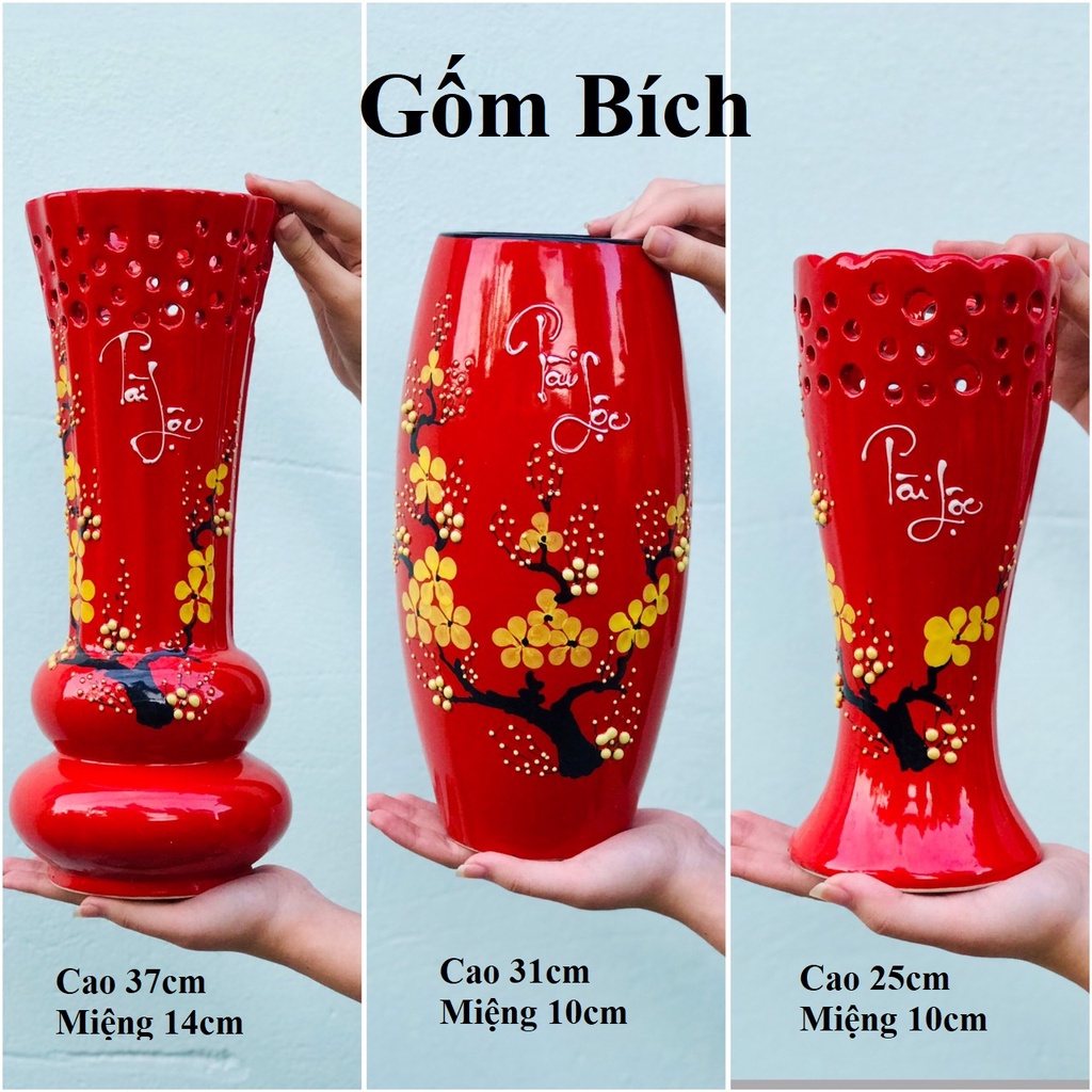 Bình Hoa Lọ Hoa Cành Mai Tài Lộc Màu Đỏ Gốm Sứ Bát Tràng - Gốm Bích