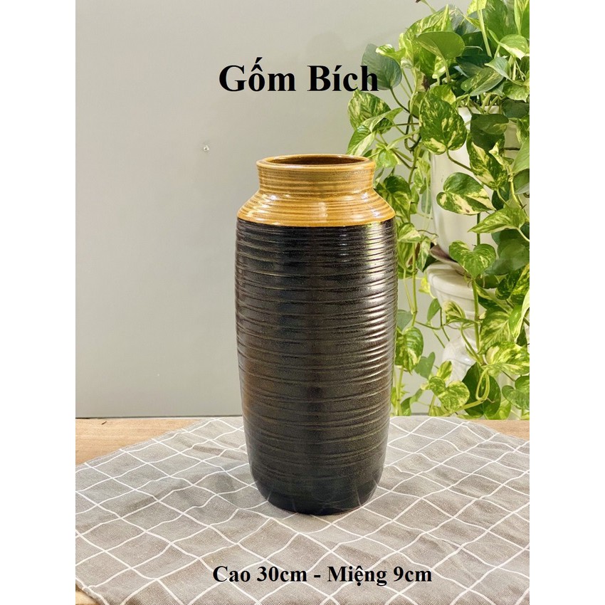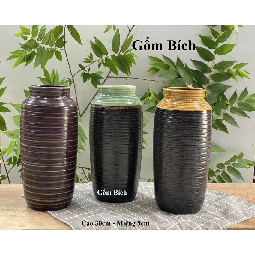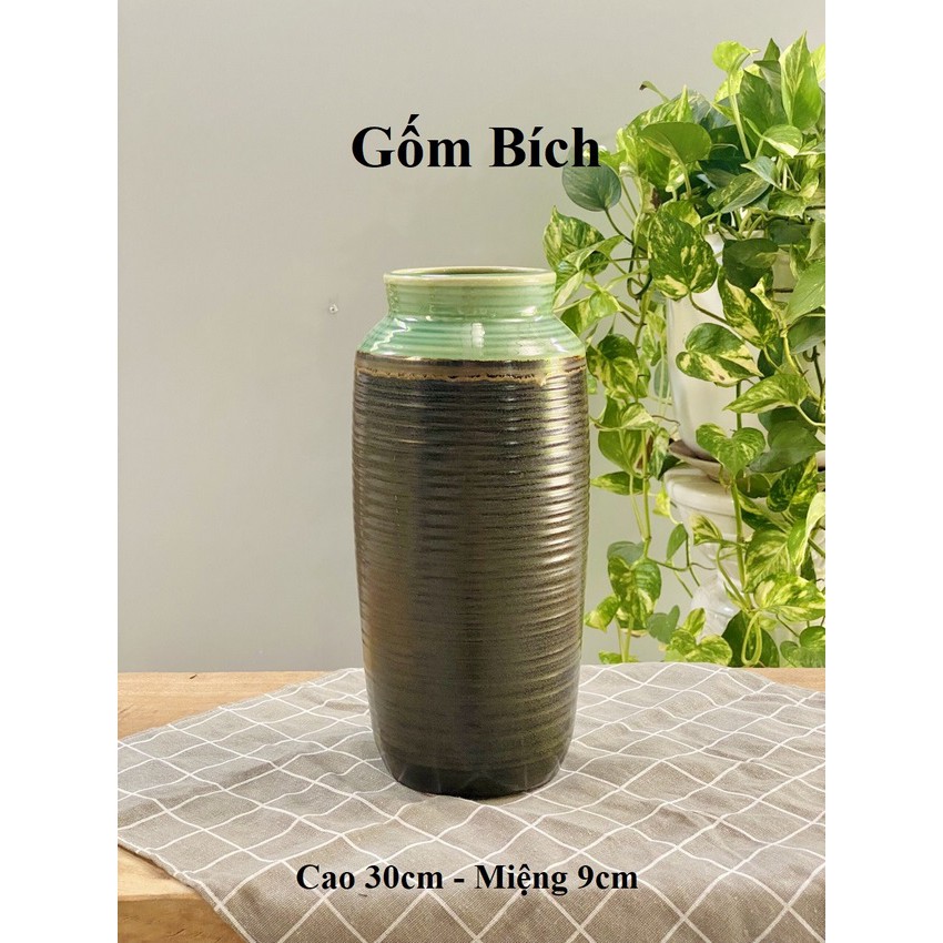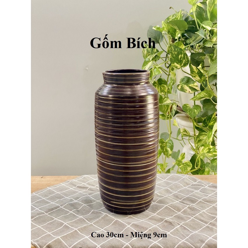 Bình Hoa Lọ Hoa Dáng Bom Miệng Rộng Vân Ngang Men Mộc - Gốm Sứ Bát Tràng