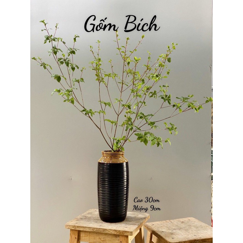 - Lọ hoa dáng bom miệng rộng vân ngang men mộc - Hàng loại 1