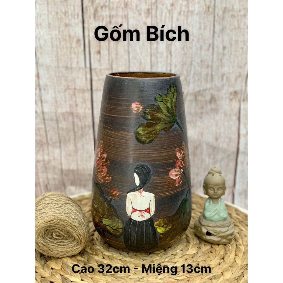 Bình Hoa Lọ Hoa Dáng Giọt Nước Men Mộc Cao 32cm Gốm Sứ Bát Tràng - Gốm Bích