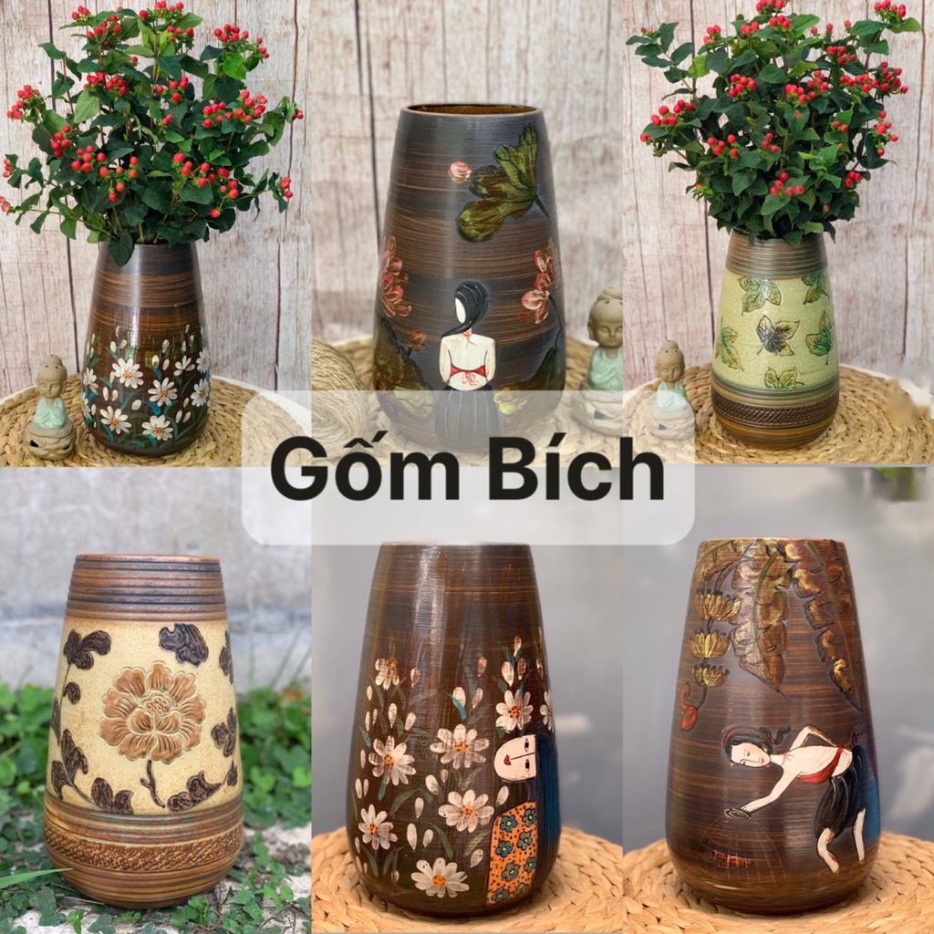 Nhà cửa & Đời sống > Trang trí nhà cửa > Bình trang trí || Bình Hoa Lọ Hoa Dáng Giọt Nước Men Mộc Cao 32cm Gốm Sứ Bát Tràng - Gốm BíchCòn hàng