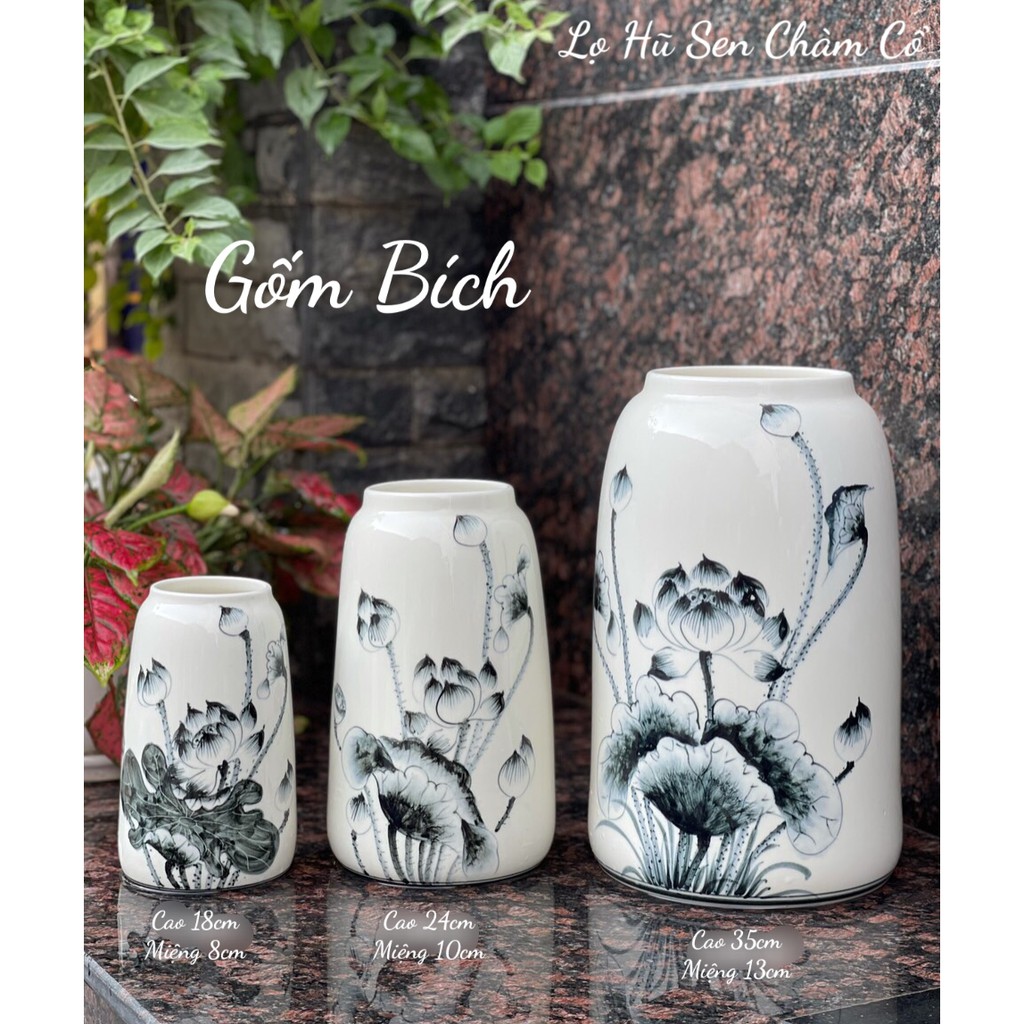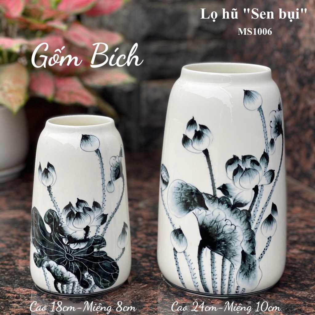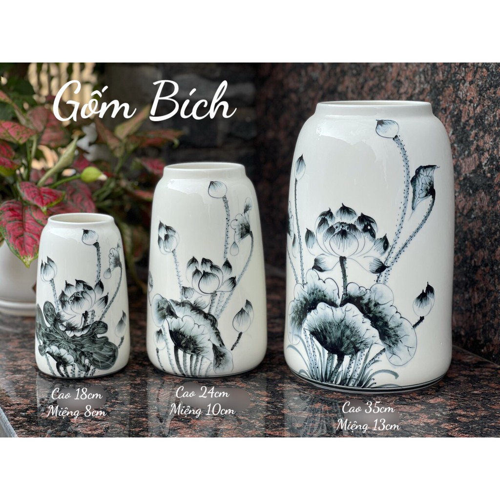 - Lọ hoa Sứ Dáng Lọ Hũ Vẽ Sen Bụi Men Trắng - Hàng loại 1