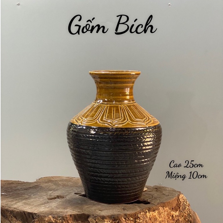 - Kích thước: cao 25cm, miệng 10cm, Phình 18cm