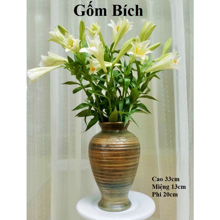 Bình Hoa Lọ Hoa Dáng Vò Cao Chân Loe Men Mộc Gốm Sứ Bát Tràng - Gốm Bích