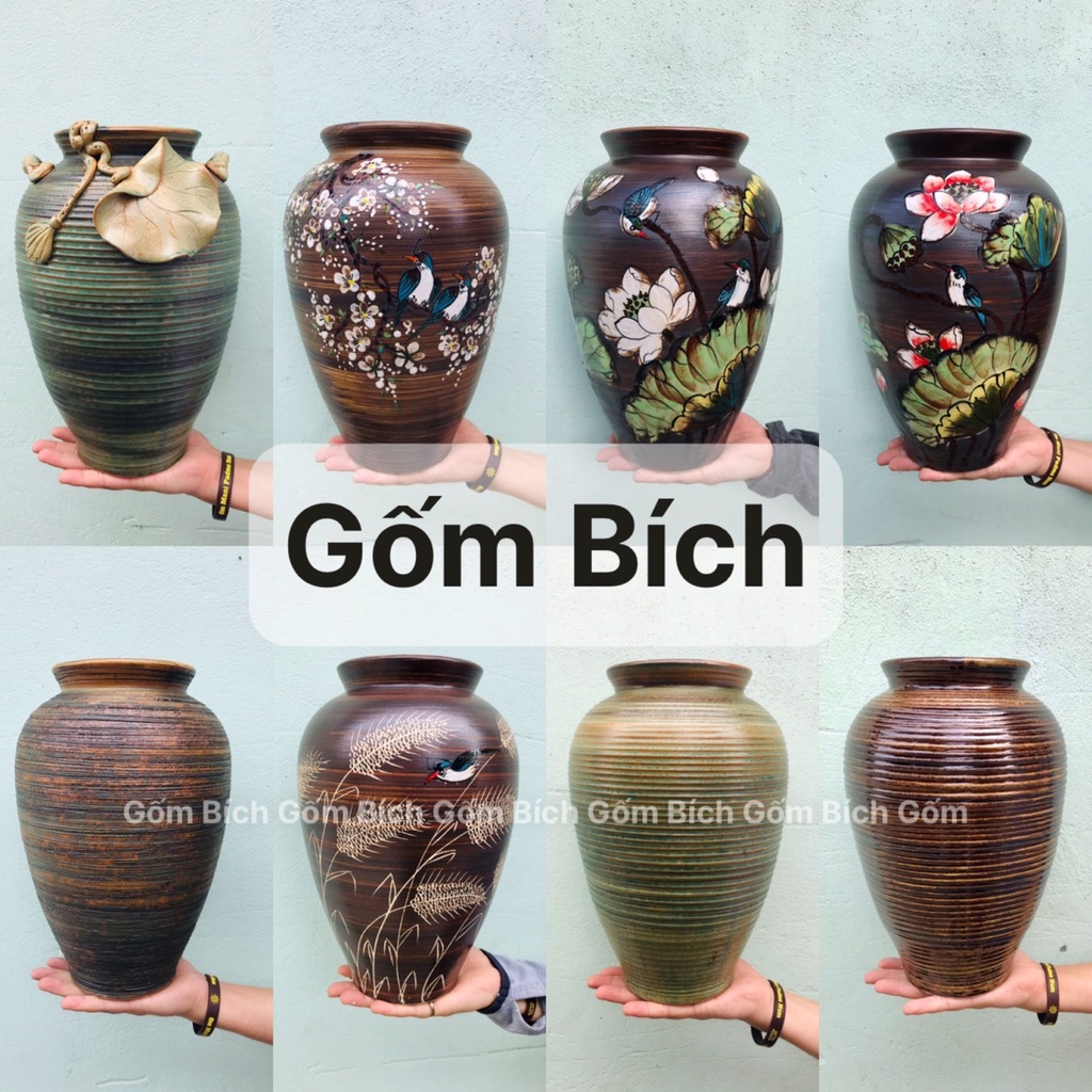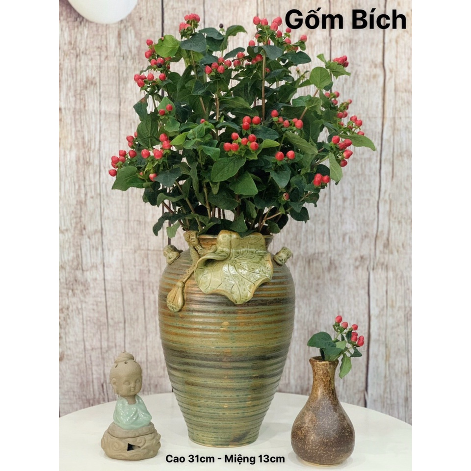Nhà cửa & Đời sống > Trang trí nhà cửa > Bình trang trí || Bình Hoa Lọ Hoa Dáng Vò Đắp Lá Sen Men Mộc Gốm Sứ Bát Tràng - Gốm BíchCòn hàng
