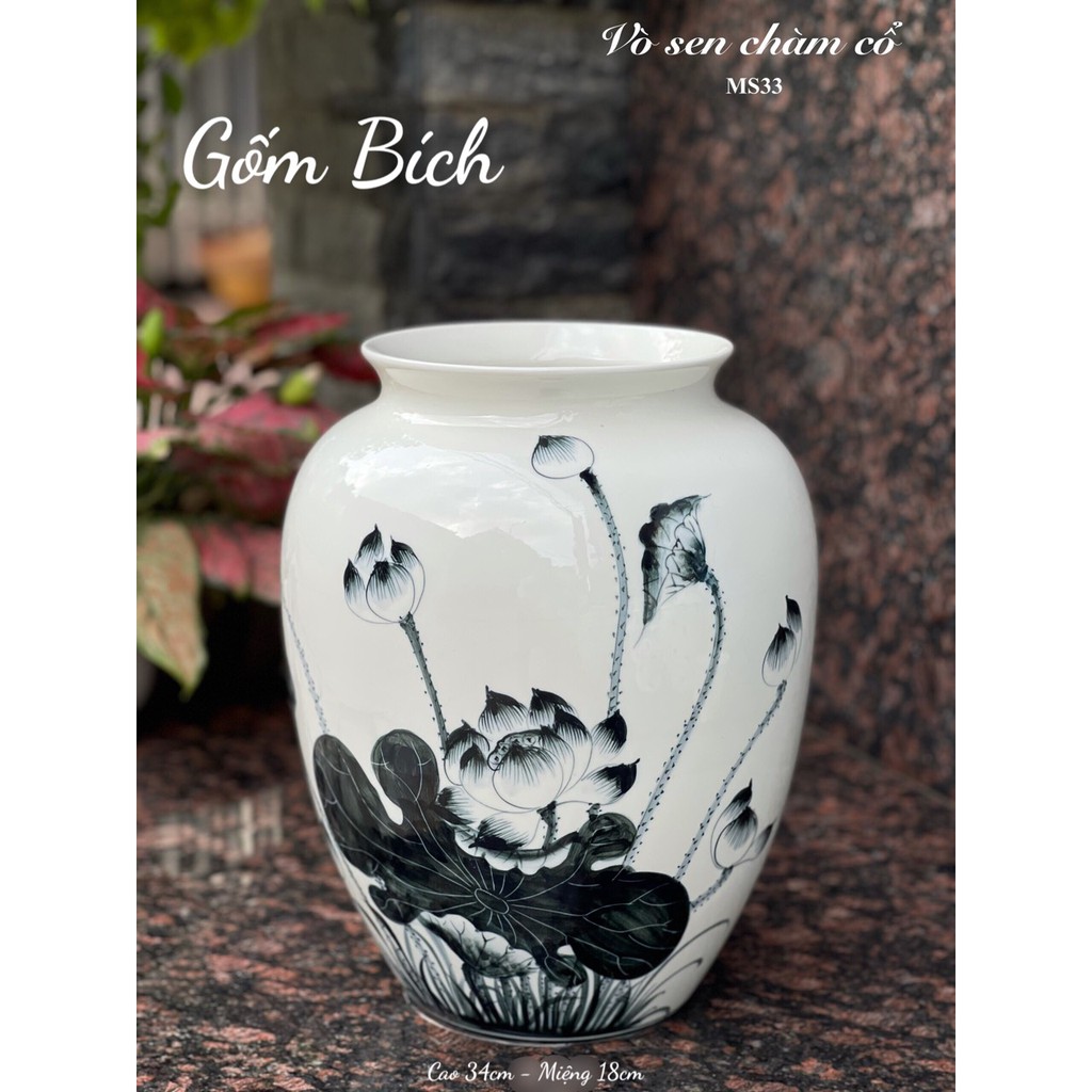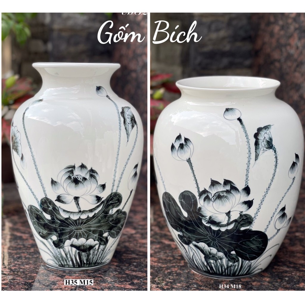 - Lọ hoa Sứ Dáng Vò vẽ Sen Bụi Men Kem - Hàng loại 1